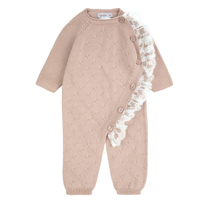 Questa tutina intera per neonata, realizzata in cotone 100% di alta qualità con motivo a rilievo e dettagli in pizzo, unisce comfort e raffinatezza. Progettata per essere perfetta in clinica, garantisce morbidezza e delicatezza sulla pelle sensibile del neonato, offrendo al contempo un aspetto elegante e sofisticato. Ideale per accogliere il tuo piccolo con cura e stile fin dai primi giorni.