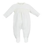 Questa tutina intera è perfetta per proteggere la tua neonata dal freddo grazie al suo caldo tessuto in cotone effetto trapuntato. Il suo colore neutro e la sua delicatezza la rendono ideale per la pelle sensibile del tuo bambino.