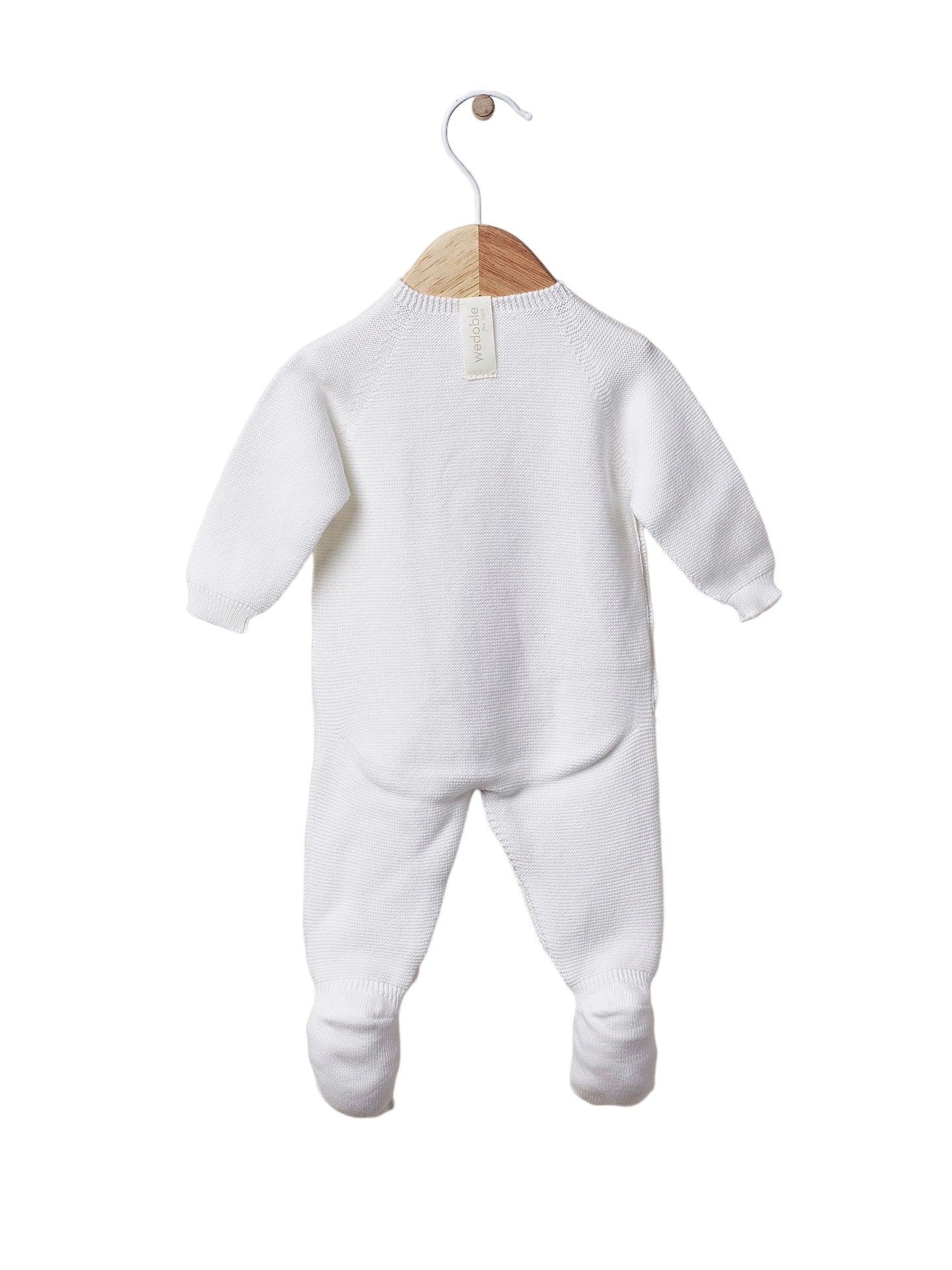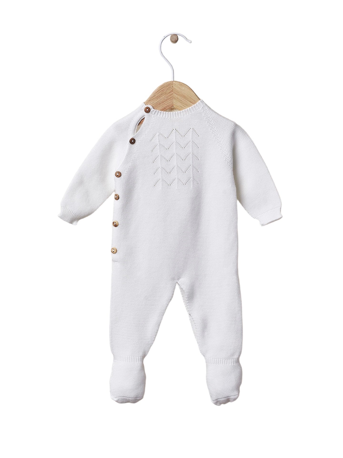 Einteiliger Playsuit aus warmer Bio-Baumwolle in einfarbigem Cremeton mit Perforationen.