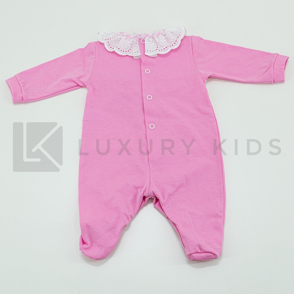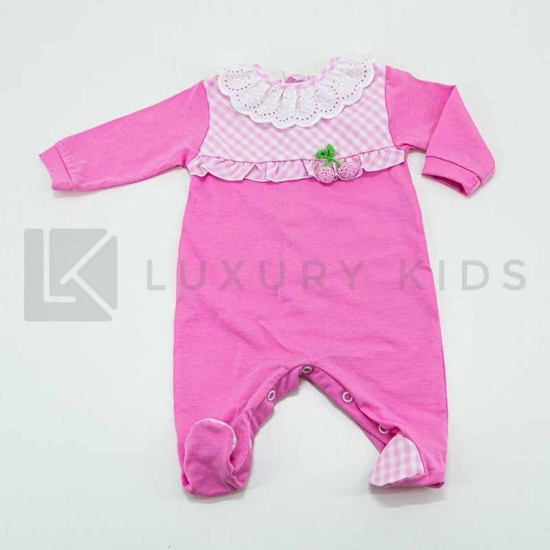 Tutina Intera In Cotone Fuxia Con Corpetto A Quadretti E Collo Volant Neonata TETO E TATTA TU3150 - TETO E TATTA - LuxuryKids