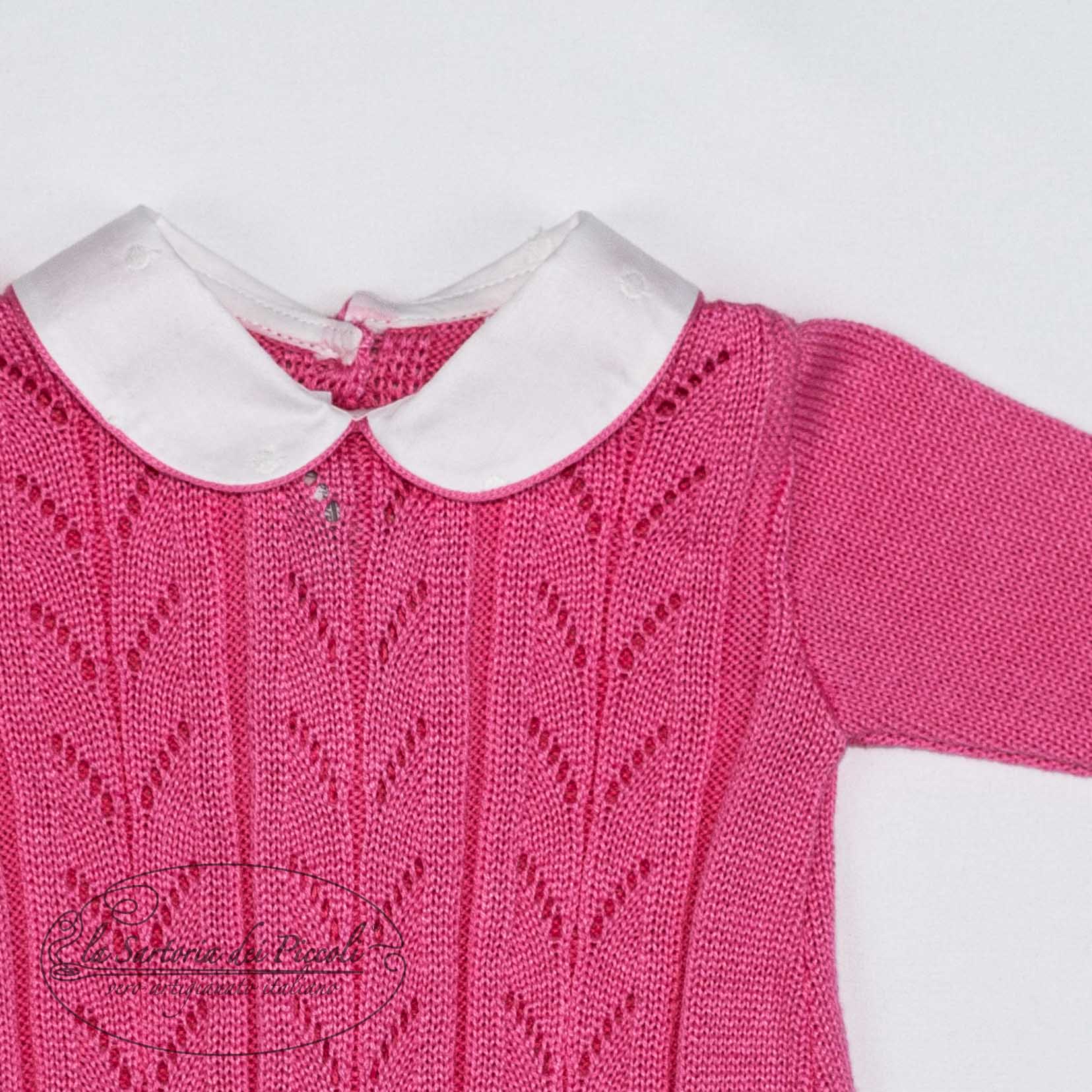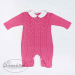 Questa elegante tutina in maglia lavorata presenta delicati motivi traforati e un raffinato colletto in tessuto bianco. Ideale per ogni occasione, garantisce un look sofisticato e confortevole per il tuo bambino. La maglia lavorata permette una perfetta traspirazione della pelle, mentre il colletto in tessuto bianco aggiunge un tocco di stile.