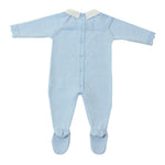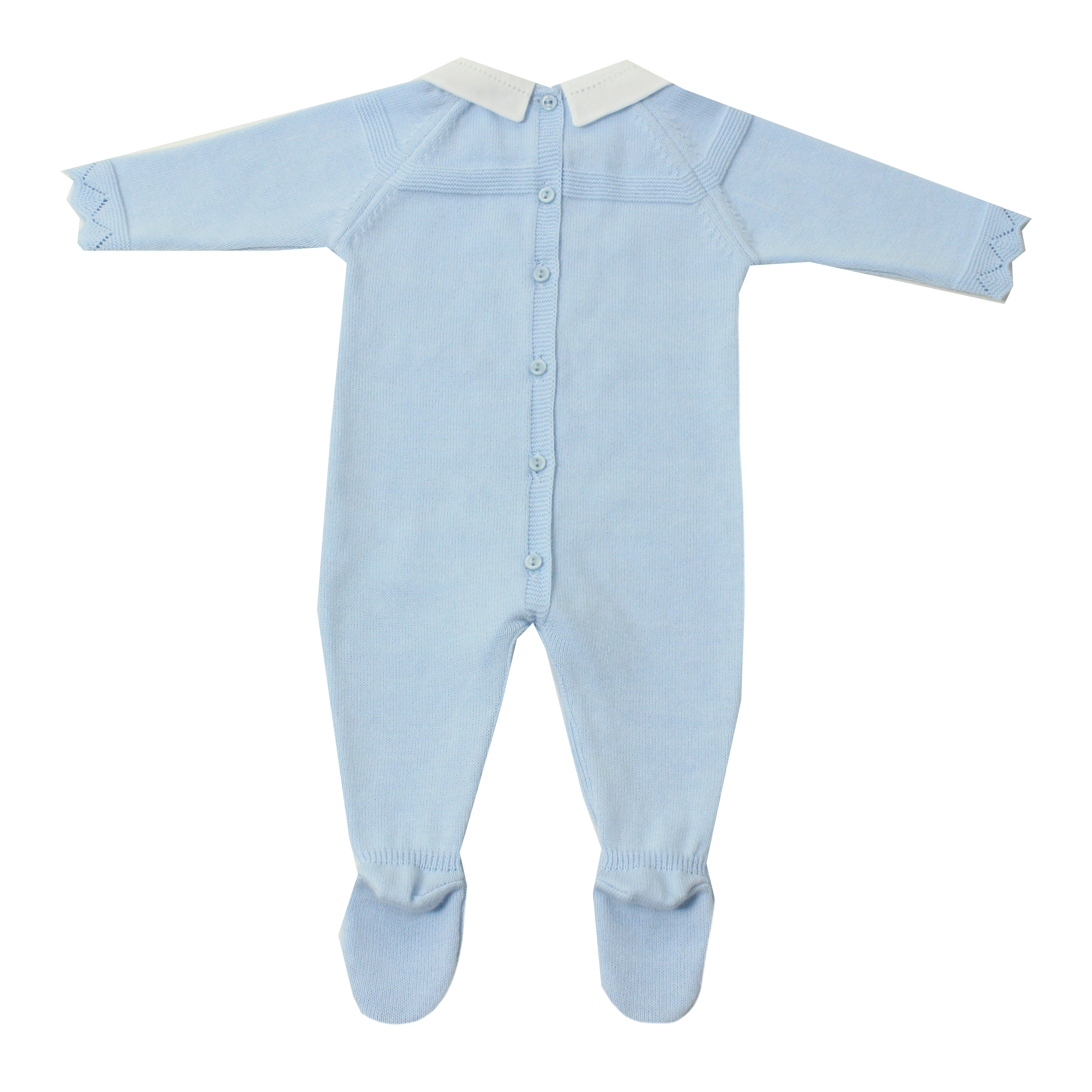 Questa tutina intera è realizzata in morbido filo di cotone e presenta una deliziosa lavorazione traforata. Ideale per l'uscita dalla clinica, grazie al suo collo ricamato, garantirà comfort e protezione al tuo neonato.