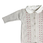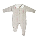 Questa tutina in misto lana è perfetta per il corredino del tuo bambino. Realizzata in morbida lana, garantisce il massimo comfort per la tua neonata. Con apertura sul davanti e colletto tondo per una facile e pratica vestizione. Ideale per l'uscita clinica o per un look elegante e confortevole.