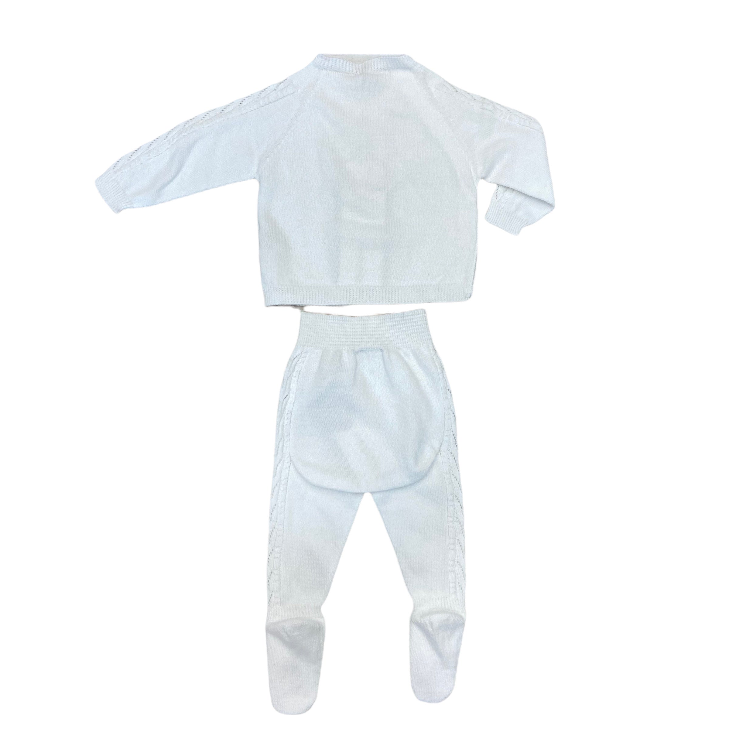 Tutina Spezzata Antipanico In Filo Bianco Con Lavorazioni Unisex Neonati WEDOBLE 01301A - WEDOBLE - LuxuryKids