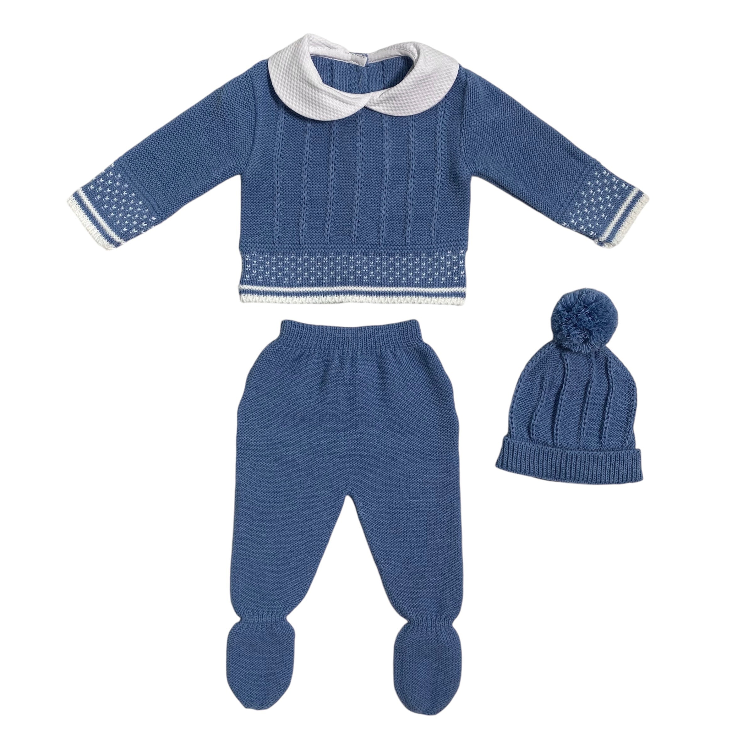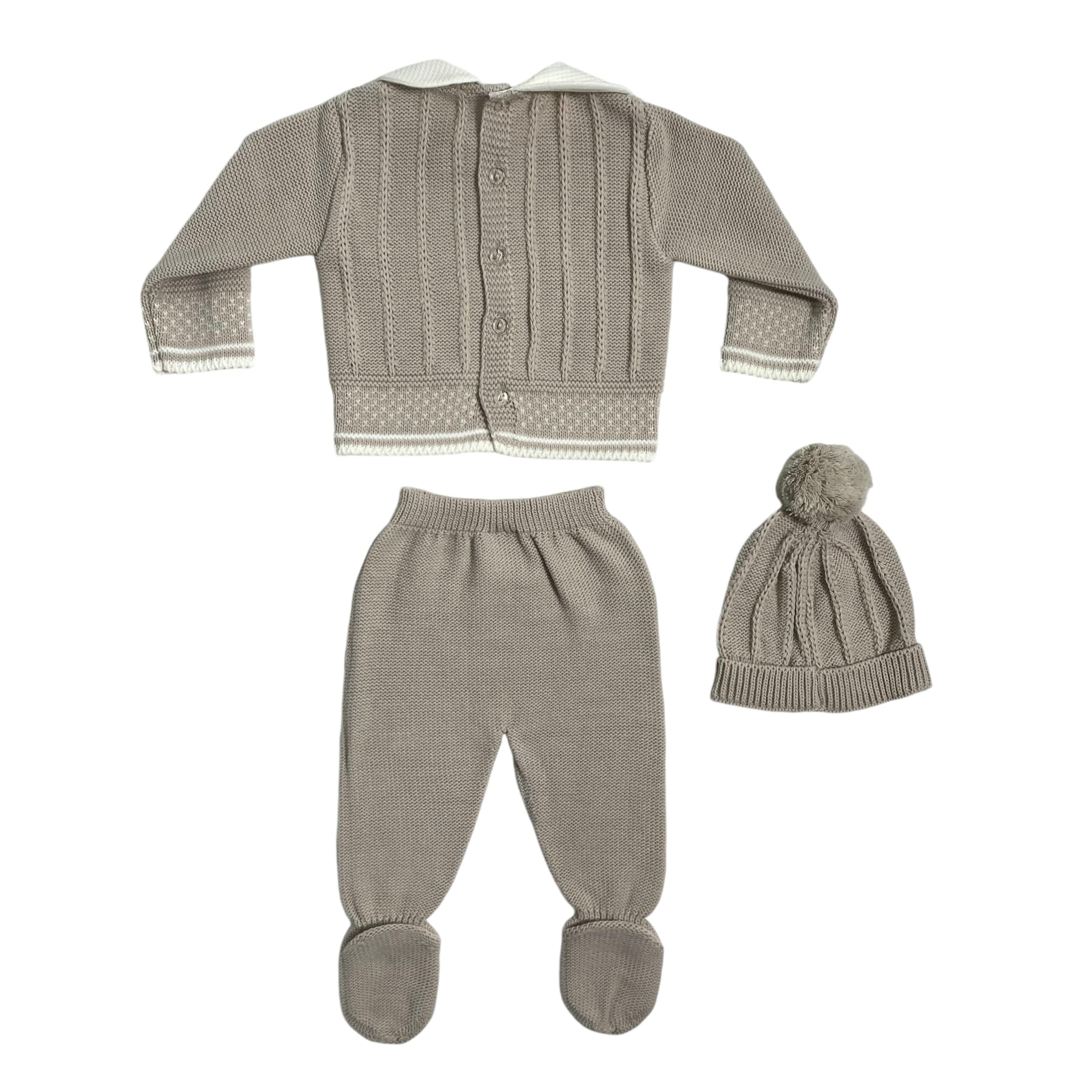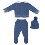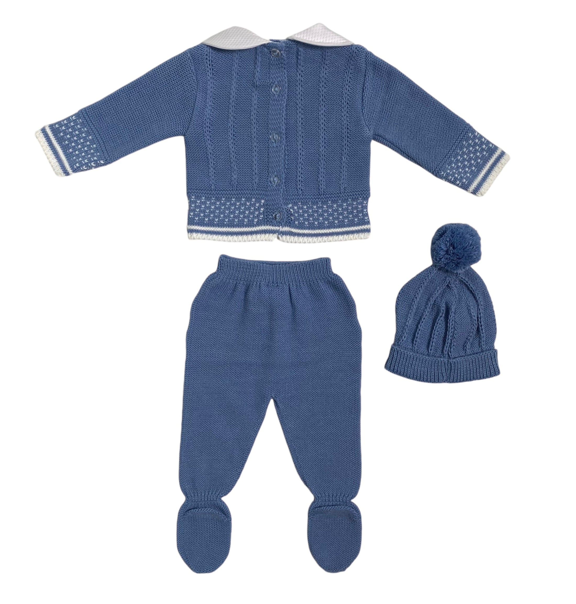 Questa tutina spezzata in tessuto anallergico acrilico è perfetta per neonati in uscita clinica o per i primi giorni. Con il suo design elegante e la trama particolare, è adatta per ogni occasione. Completa di un cappello coordinato, è ideale per proteggere il tuo piccolo con stile.