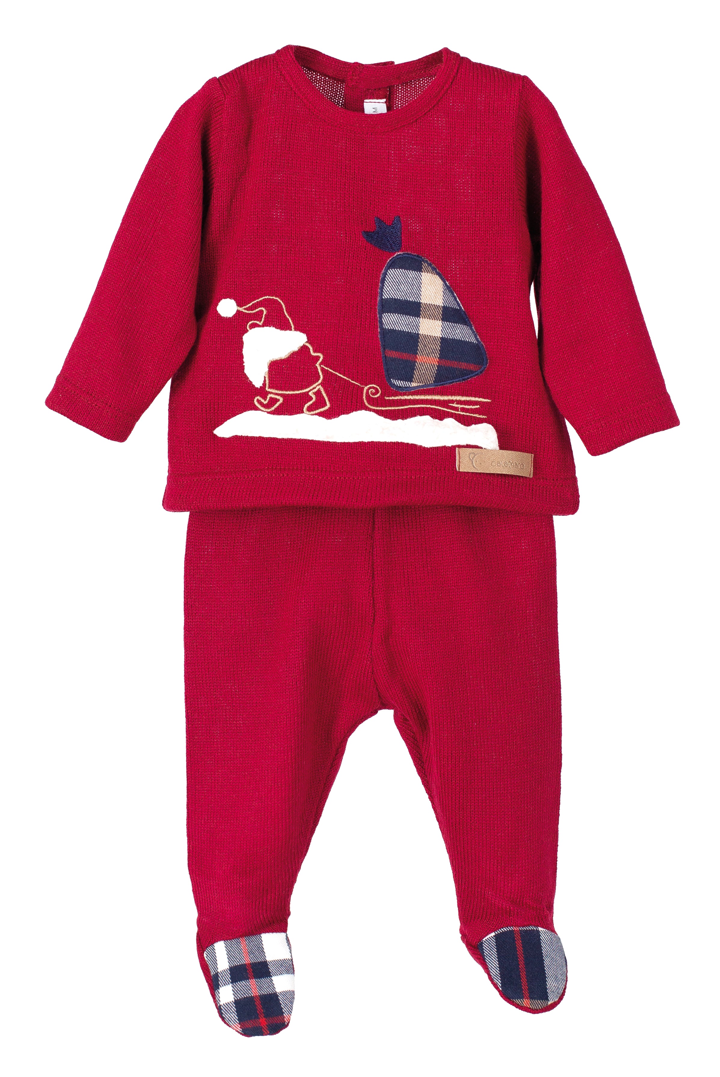 Warmer Baumwoll-Split-Strampler mit Weihnachtsmann- und Schlittenstickerei.