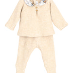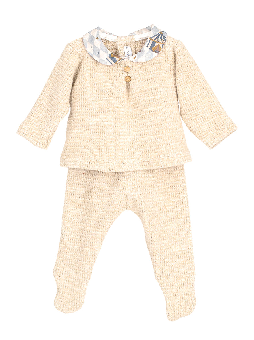 Questa tutina spezzata in caldo cotone è ideale per i primi giorni del neonato, offrendo comfort e calore durante l'inverno. Il morbido tessuto garantisce una sensazione piacevole sulla pelle delicata del bambino, mentre il colletto in cotone aggiunge un tocco elegante. Pratica e comoda, è perfetta per il corredino, assicurando facilità di utilizzo senza rinunciare allo stile.
