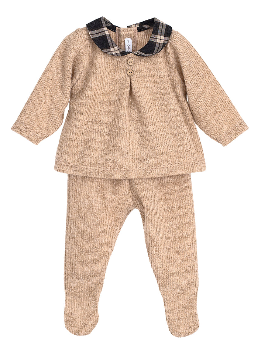 Questa tutina spezzata in caldo cotone è ideale per i primi giorni del neonato, offrendo comfort e calore durante l'inverno. Il morbido tessuto garantisce una sensazione piacevole sulla pelle delicata del bambino, mentre il colletto a quadri aggiunge un tocco elegante. Pratica e comoda, è perfetta per il corredino, assicurando facilità di utilizzo senza rinunciare allo stile.