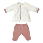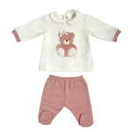 Questa tutina spezzata in ciniglia presenta un morbido orso ricamato e include una maglia in ciniglia abbinata, oltre a una ghettina in caldo cotone, ideale per le prime uscite in clinica. Il completo offre comfort e calore, garantendo eleganza e praticità per la neonato fin dai primi giorni. Perfetto come corredino raffinato e funzionale.