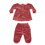 Questa raffinata tutina spezzata in ciniglia è adatta ai primi giorni di vita della tua neonata. Con eleganti dettagli ricamati, è perfetta per la clinica o per i primi appuntamenti fuori casa. Assicura il massimo comfort e stile per la tua piccola.