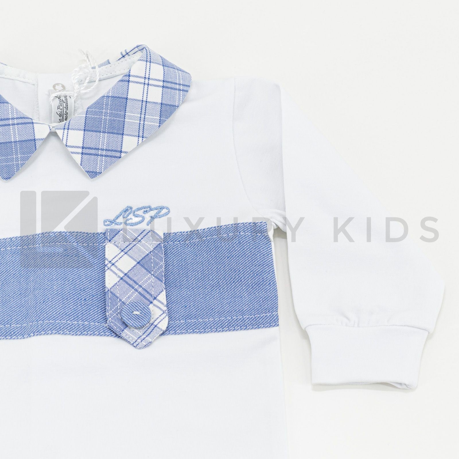 White And Blue Cotton Broken Romper With Newborn Denim Band LA SARTORIA DEI LITTLE LS755