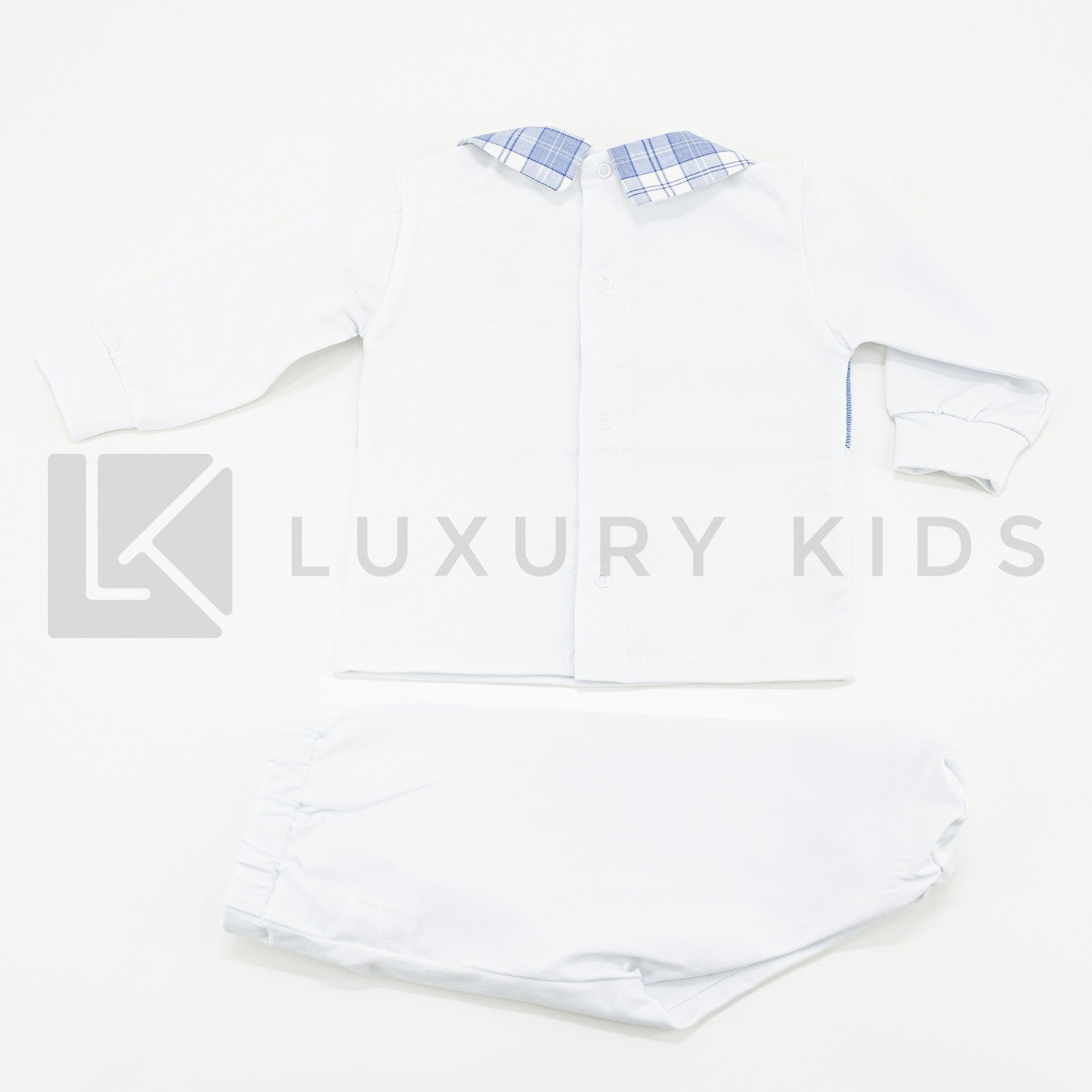 Tutina Spezzata In Cotone Bianca E Azzurra Con Fascia In Denim Neonato LA SARTORIA DEI PICCOLI LS755 - LA SARTORIA DEI PICCOLI - LuxuryKids