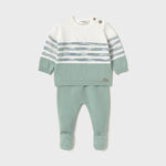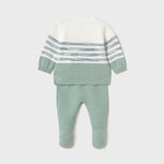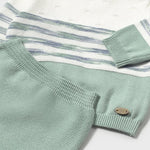 Questo completo in tricot di due pezzi per neonato è costituito da maglioncino e ghettina abbinata.