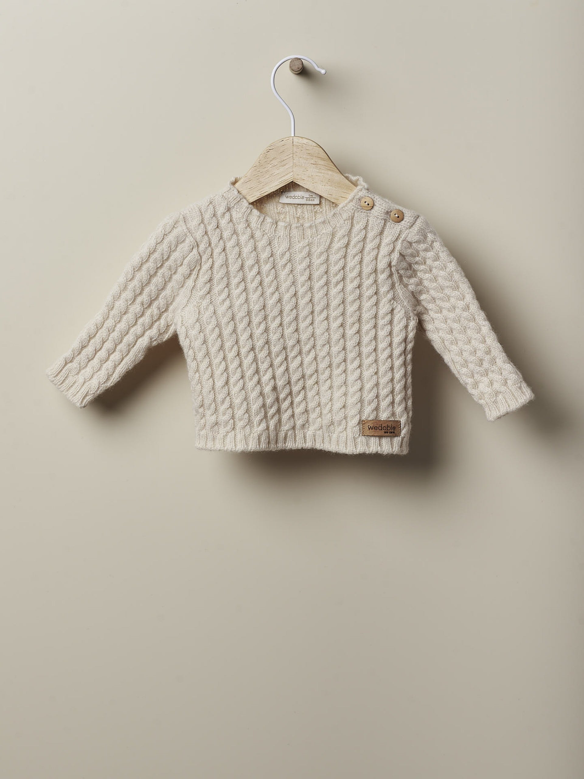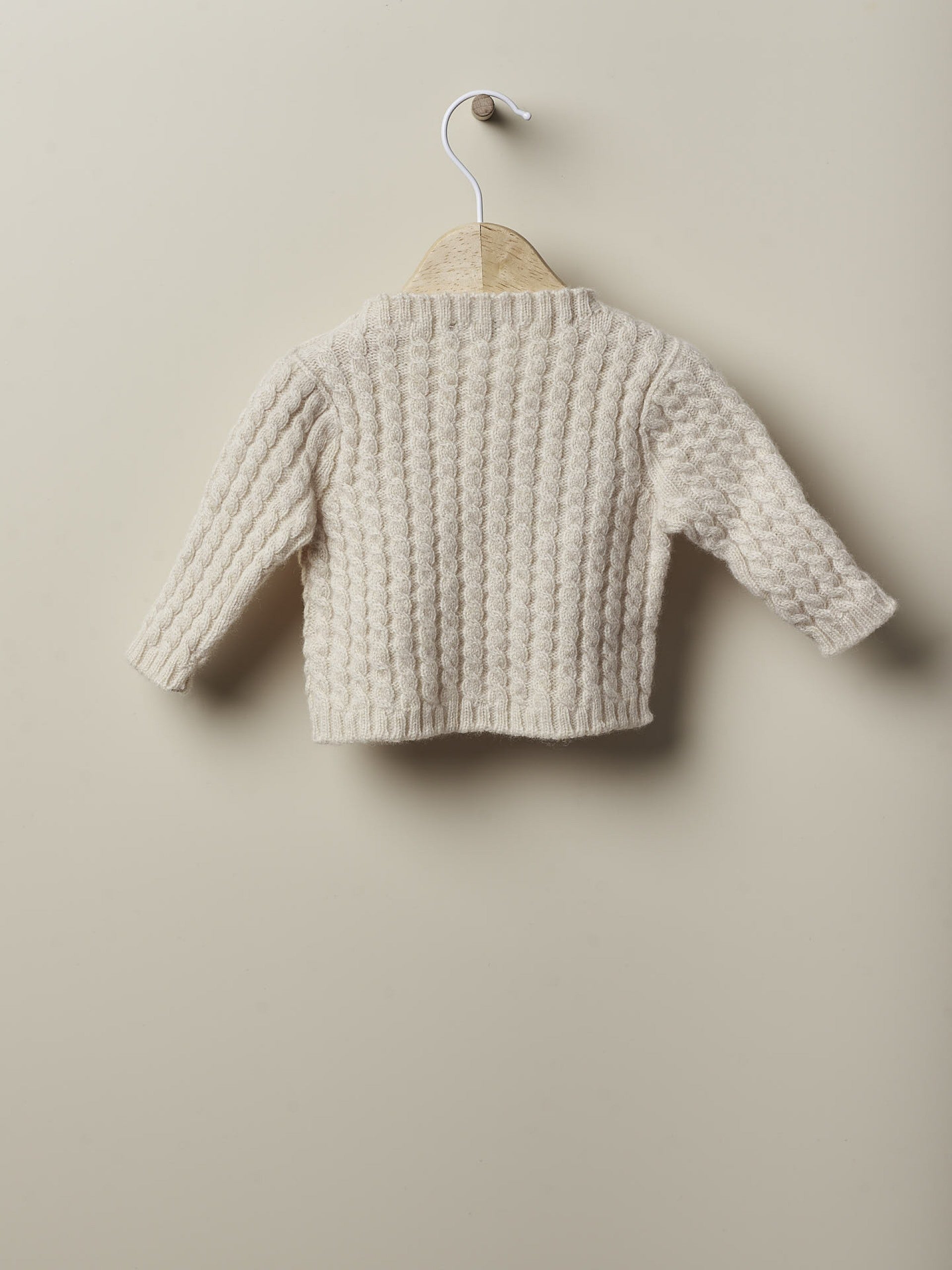 Maglione lavorato a maglia morbida e ghettina in misto lana merino e cashmere, ottimo per neonati. Maglione CHRISTMAS TIME a maniche lunghe allacciato sulla spalla con bottoni in legno. Realizzato con la tecnologia Wholegarment, questo capo è privo di cuciture per il massimo comfort del tuo bambino.