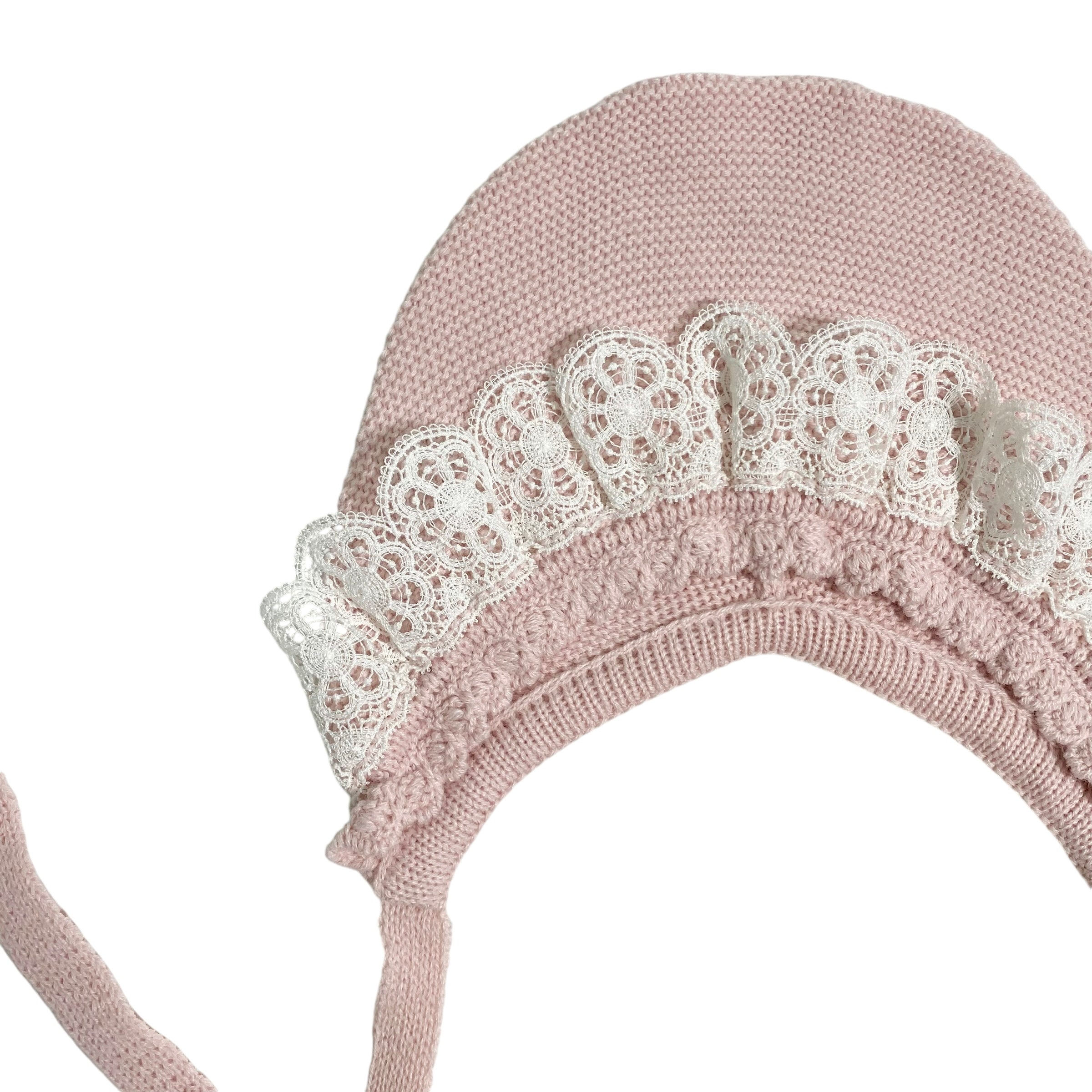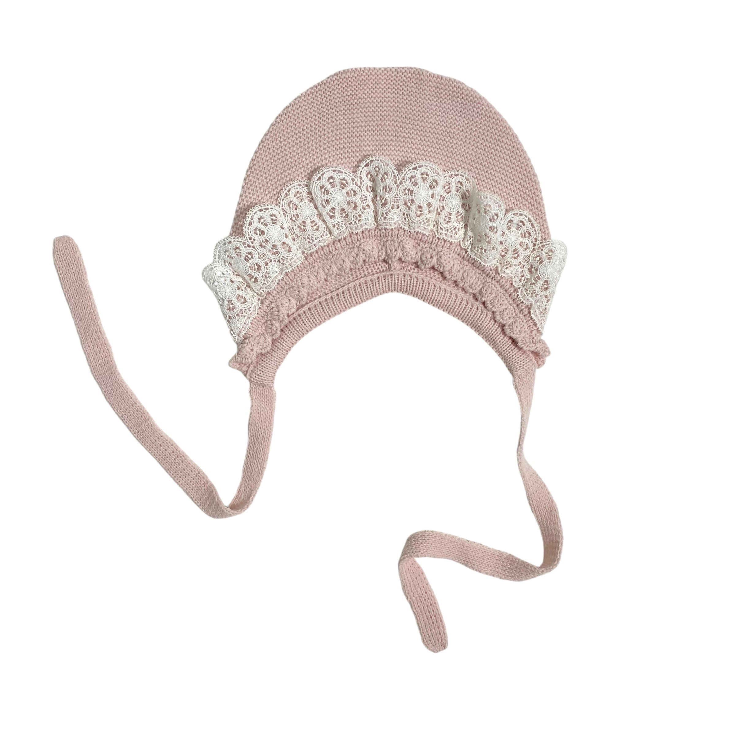 Cuffia In Cotone Con Pizzo Panna Neonata GRANLEI 496 - GRANLEI - LuxuryKids