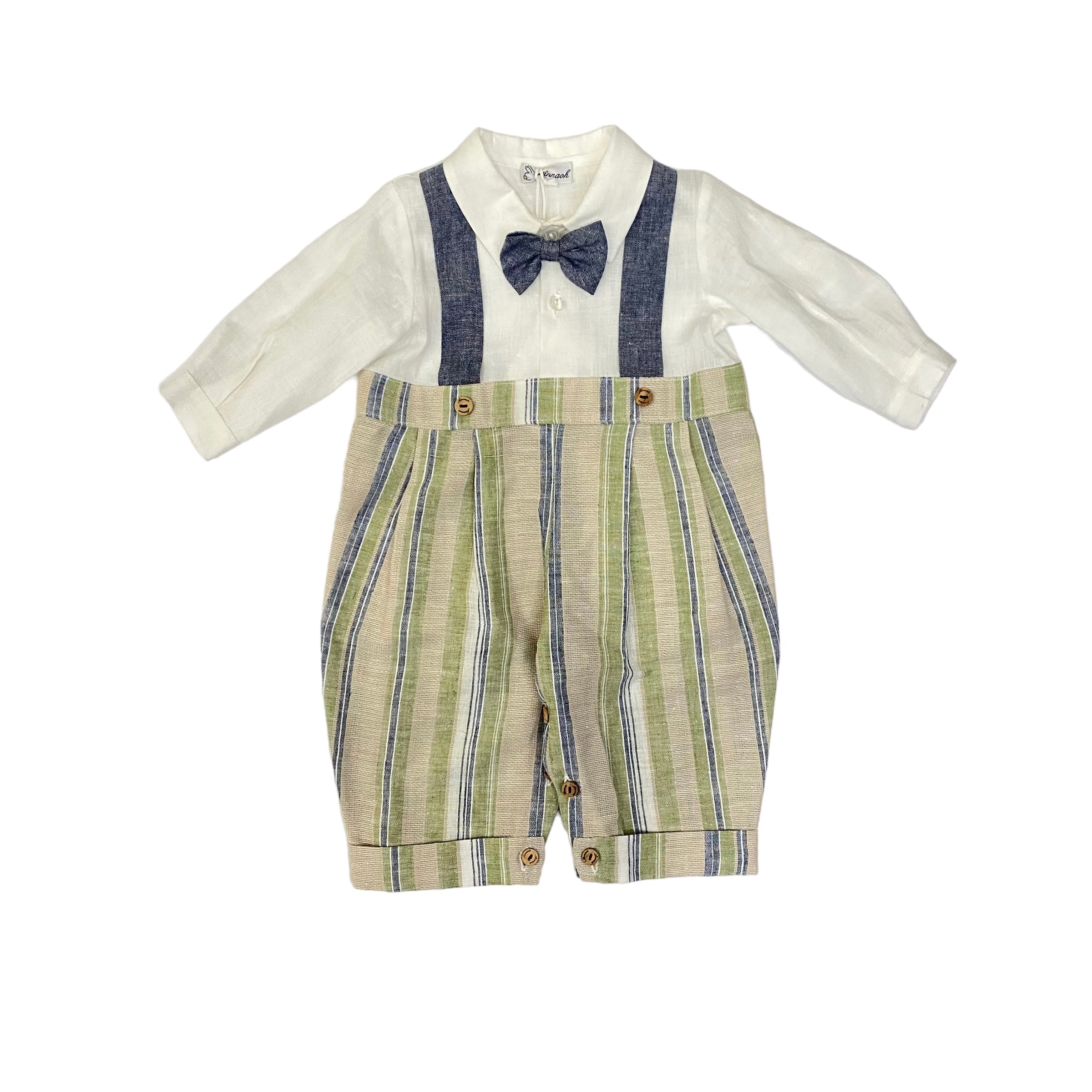 Completo Camicia E Pantalone Lungo In Cotone Fantasia Righe Neonato NINNAOH E22225 - NINNAOH - LuxuryKids