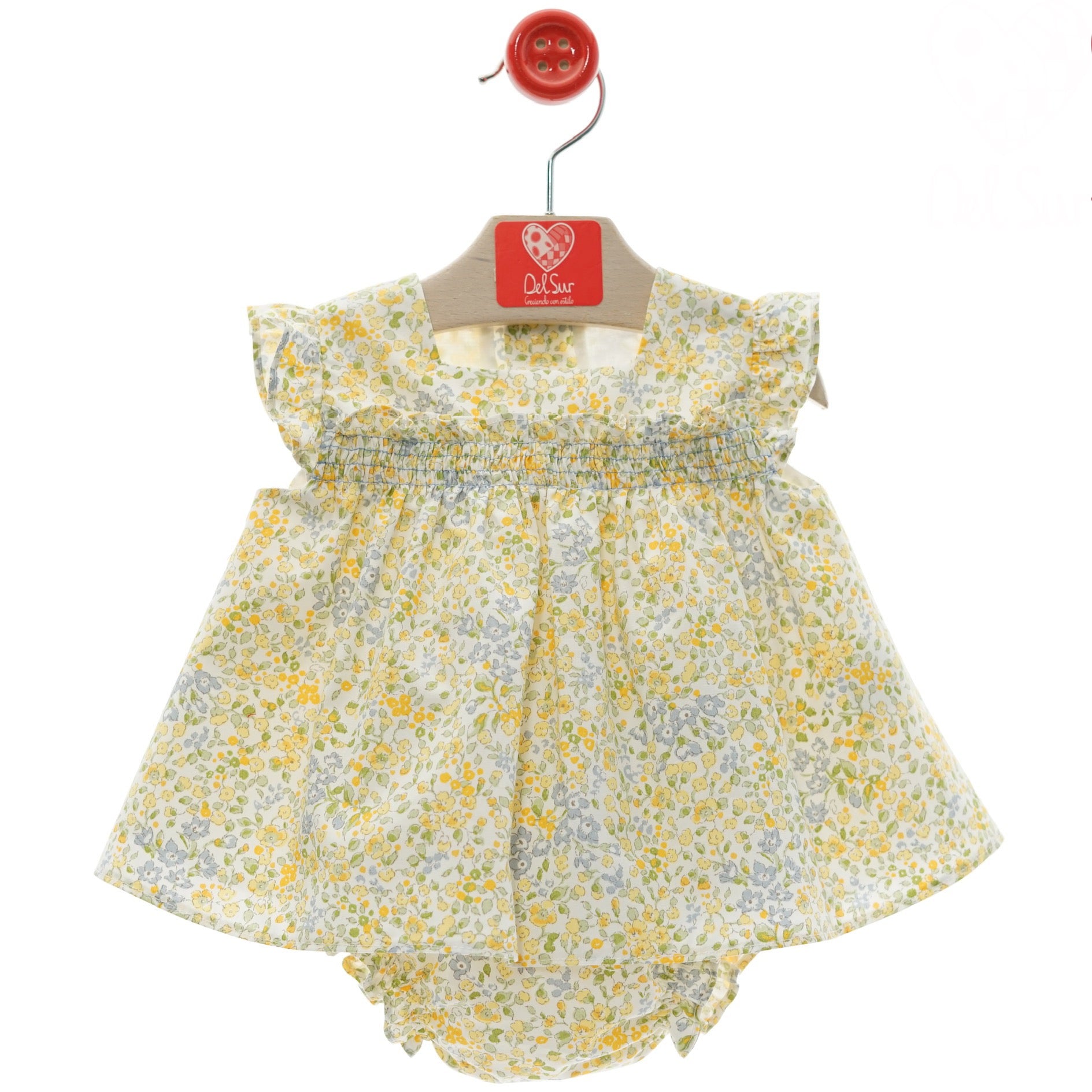 Questo elegante e casual abito corto smanicato presenta una deliziosa stampa floreale. Con una pratica chiusura a bottoncini sul retro, questo abito è perfetto per vestire la tua neonata in modo comodo e chic.