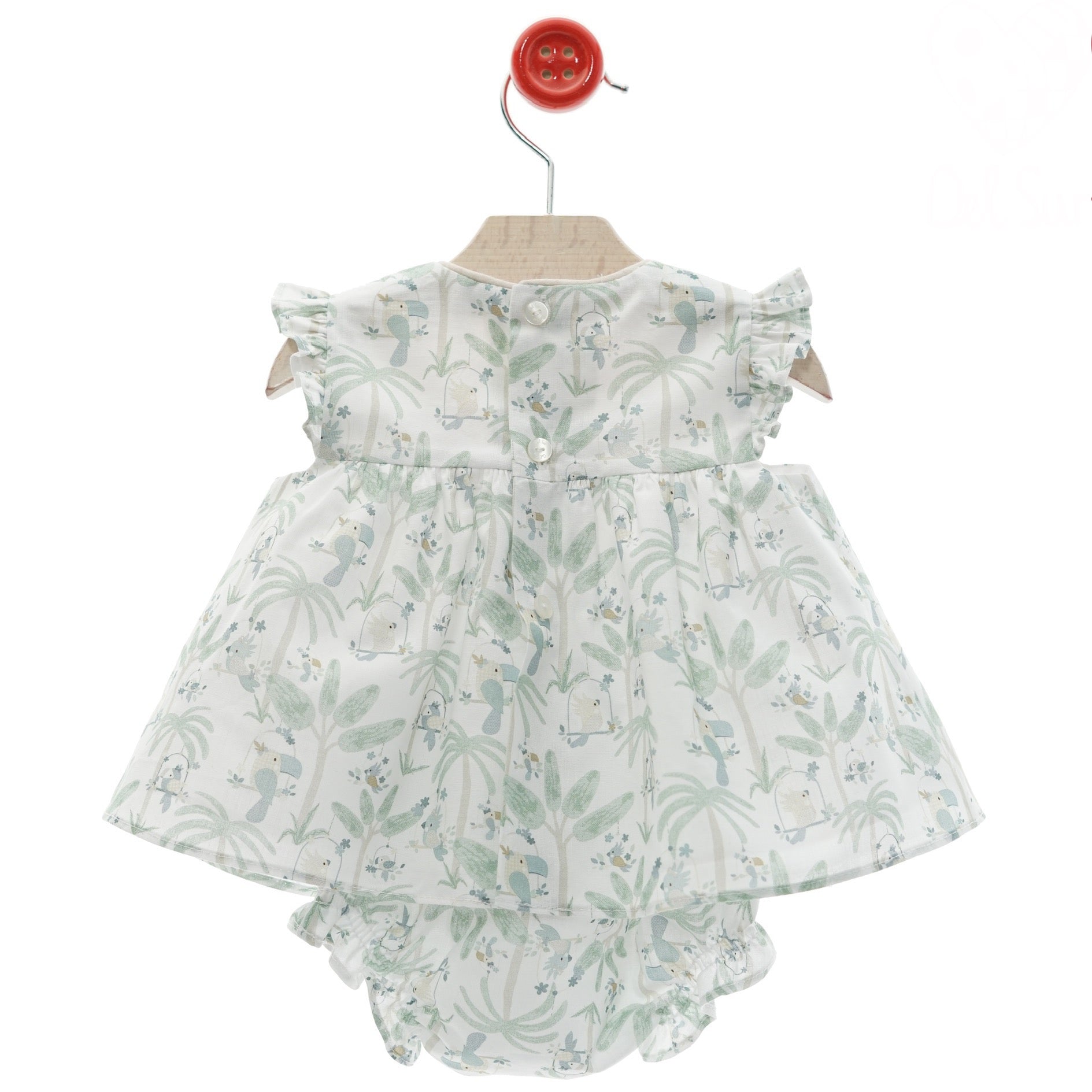 Questo abito corto smanicato è un must-have per le neonate alla moda! Con una fantastica stampa giungla, è perfetto per un look casual e alla moda. Abbinato con le culotte a tema, questo outfit è perfetto per un giorno di gioco o una festa!
