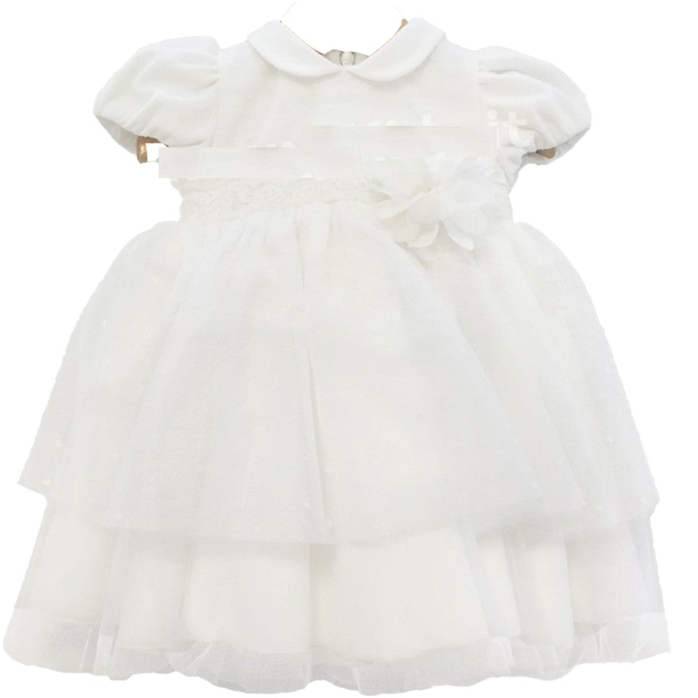 -Abito elegante a bambolina mezza manica a palloncino con corpetto ricoperto da uno strato di pizzo con colletto modello cuore
