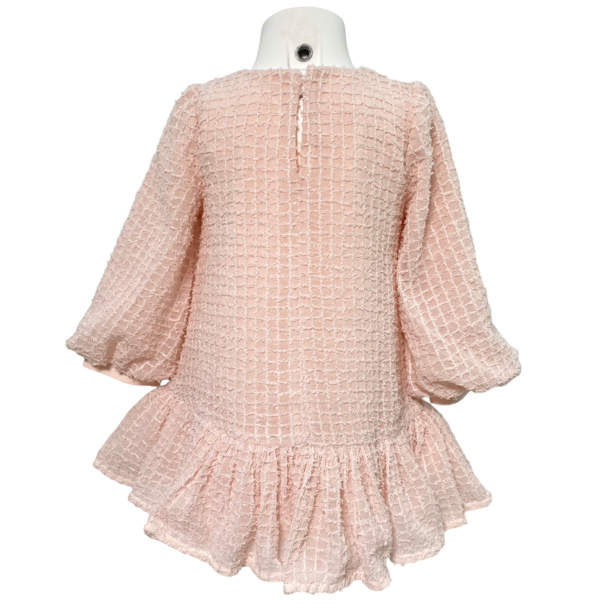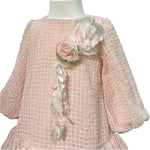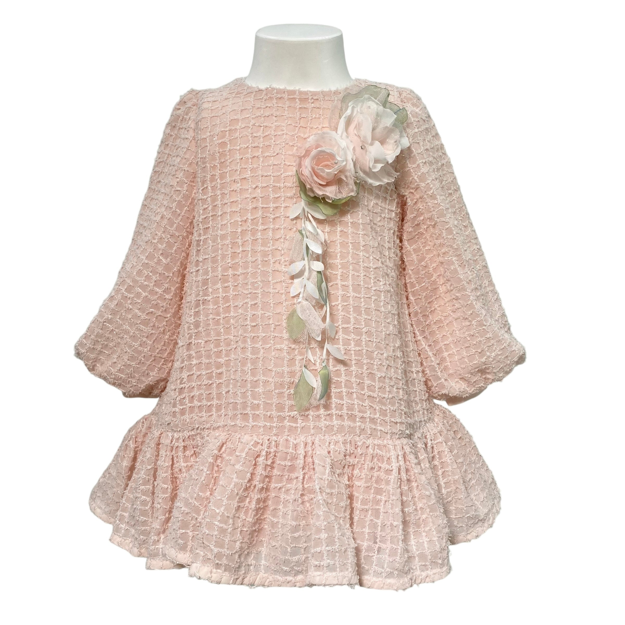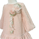 Questo elegante abito in chiffon operato con manica lunga è perfetto per le neonate in occasioni speciali. I fiori sul davanti e il fit svasato aggiungono un tocco di raffinatezza. Vestirà la tua bambina con stile e classe.