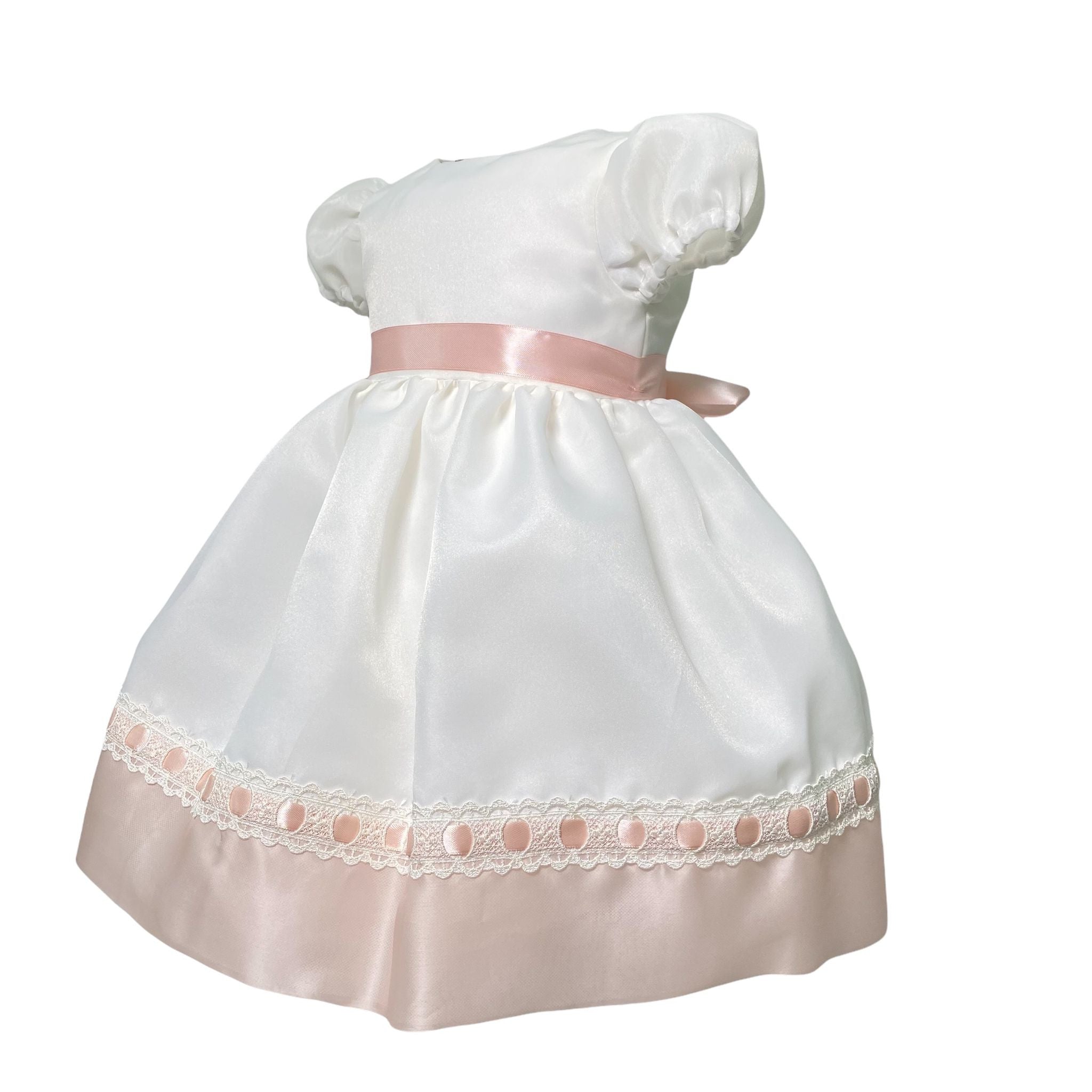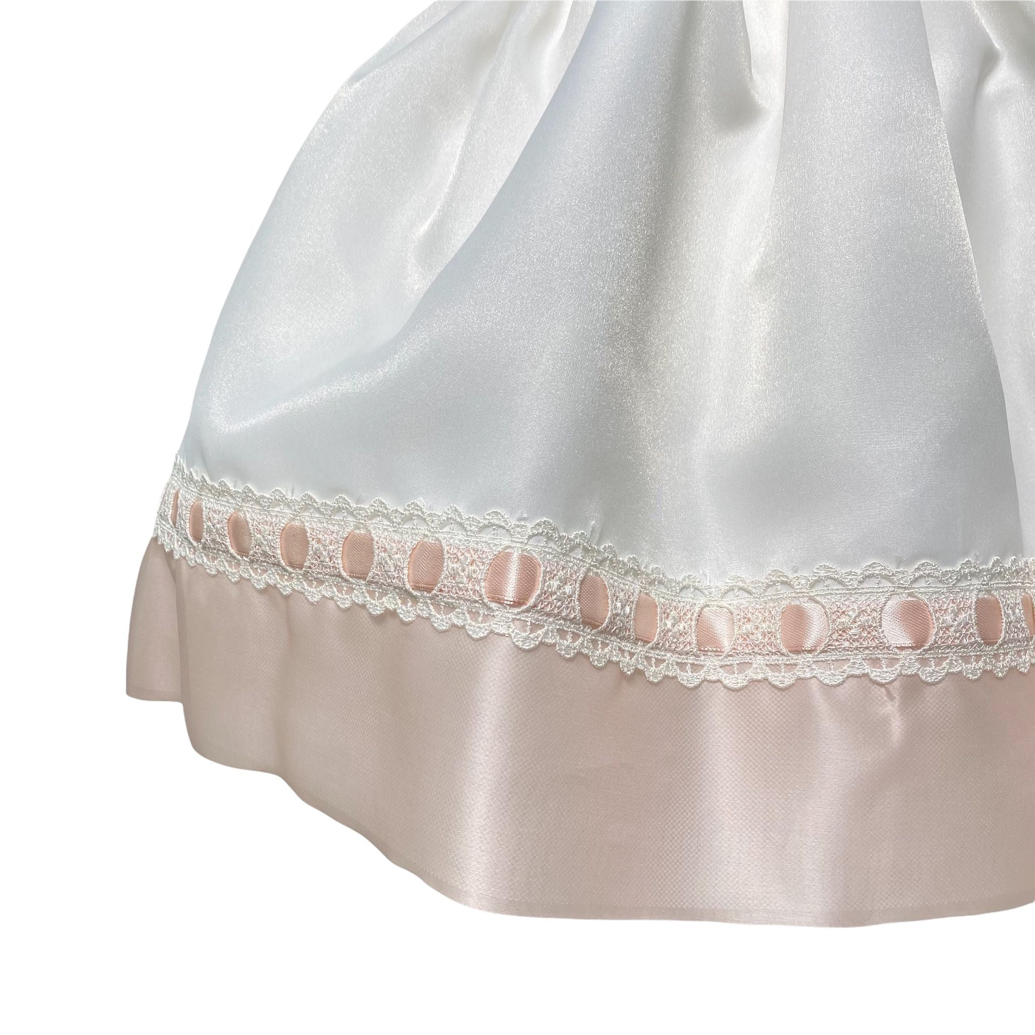 Abito Elegante In Organza Panna E Rosa Neonata ISABEL 3400