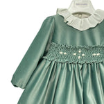 Questo abito elegante in velluto per neonata combina comfort e raffinatezza con una lavorazione precisa. Le maniche lunghe e il collo volant donano un tocco di delicatezza, mentre la fascia in punto smoke in vita valorizza la silhouette. Perfetto per occasioni speciali, assicura un look sofisticato senza rinunciare alla morbidezza e all’elasticità del tessuto. Un capo ideale per far sentire ogni piccola protagonista unica e a suo agio.