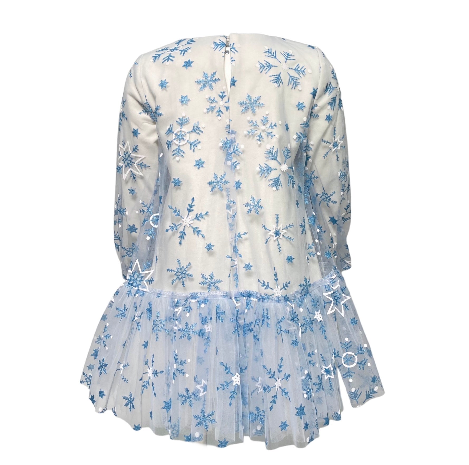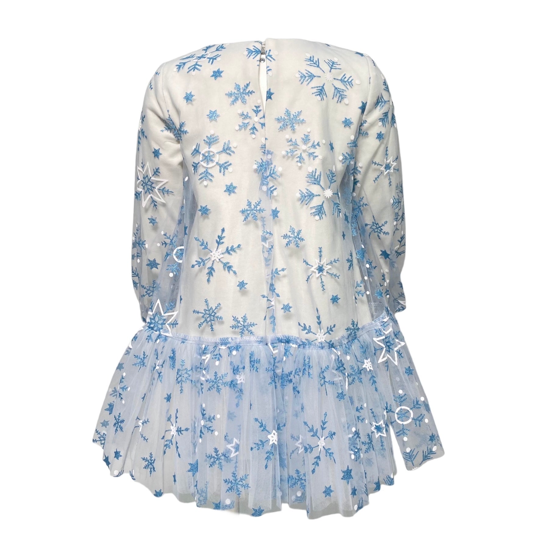 Abito elegante manica lunga in felpa e tulle, con fiocchi di neve in glitter.