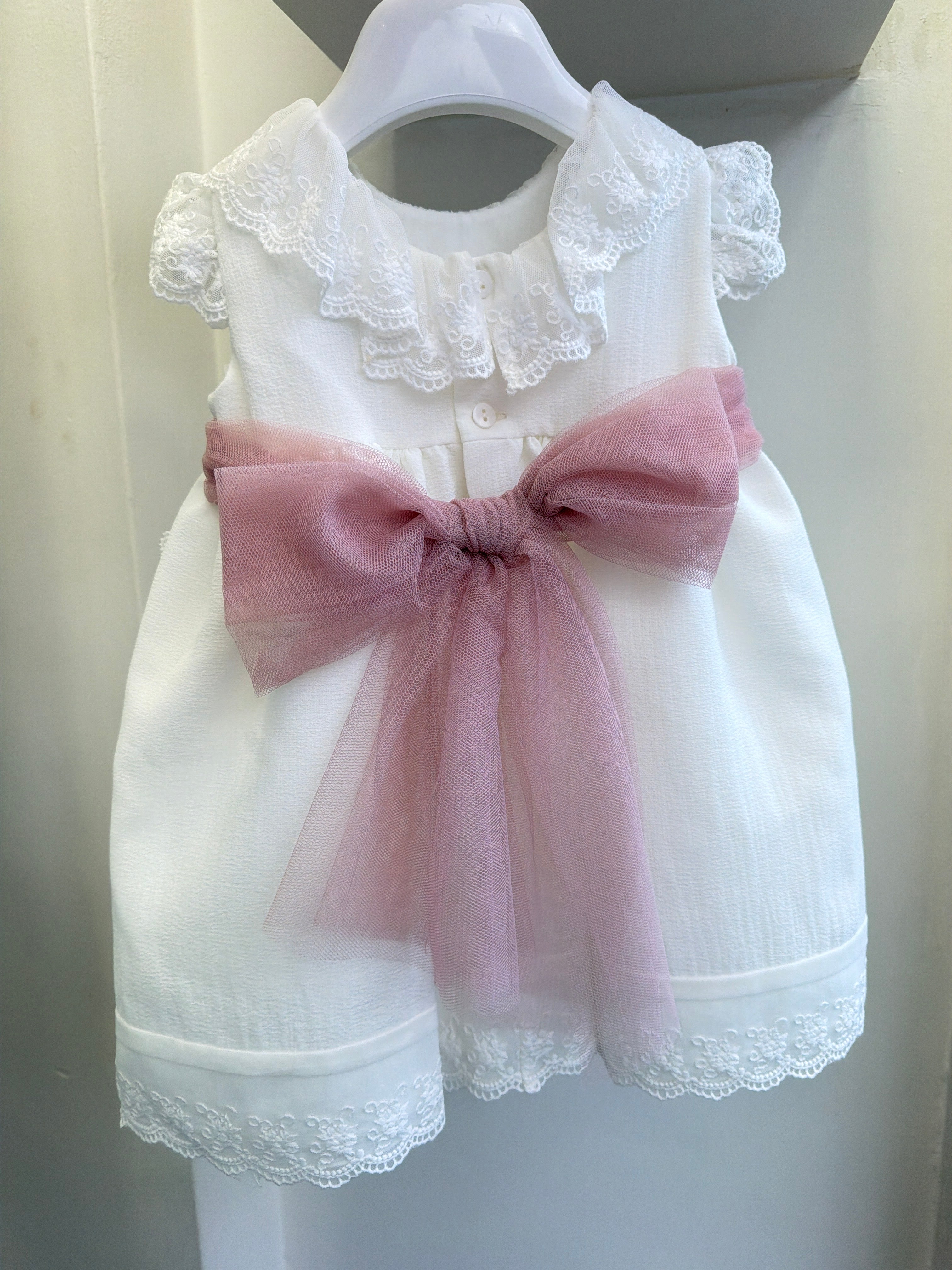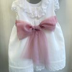 Abito Elegante Smanicato Battesimale Con Fascia Neonata PONTO POR PONTO 6537