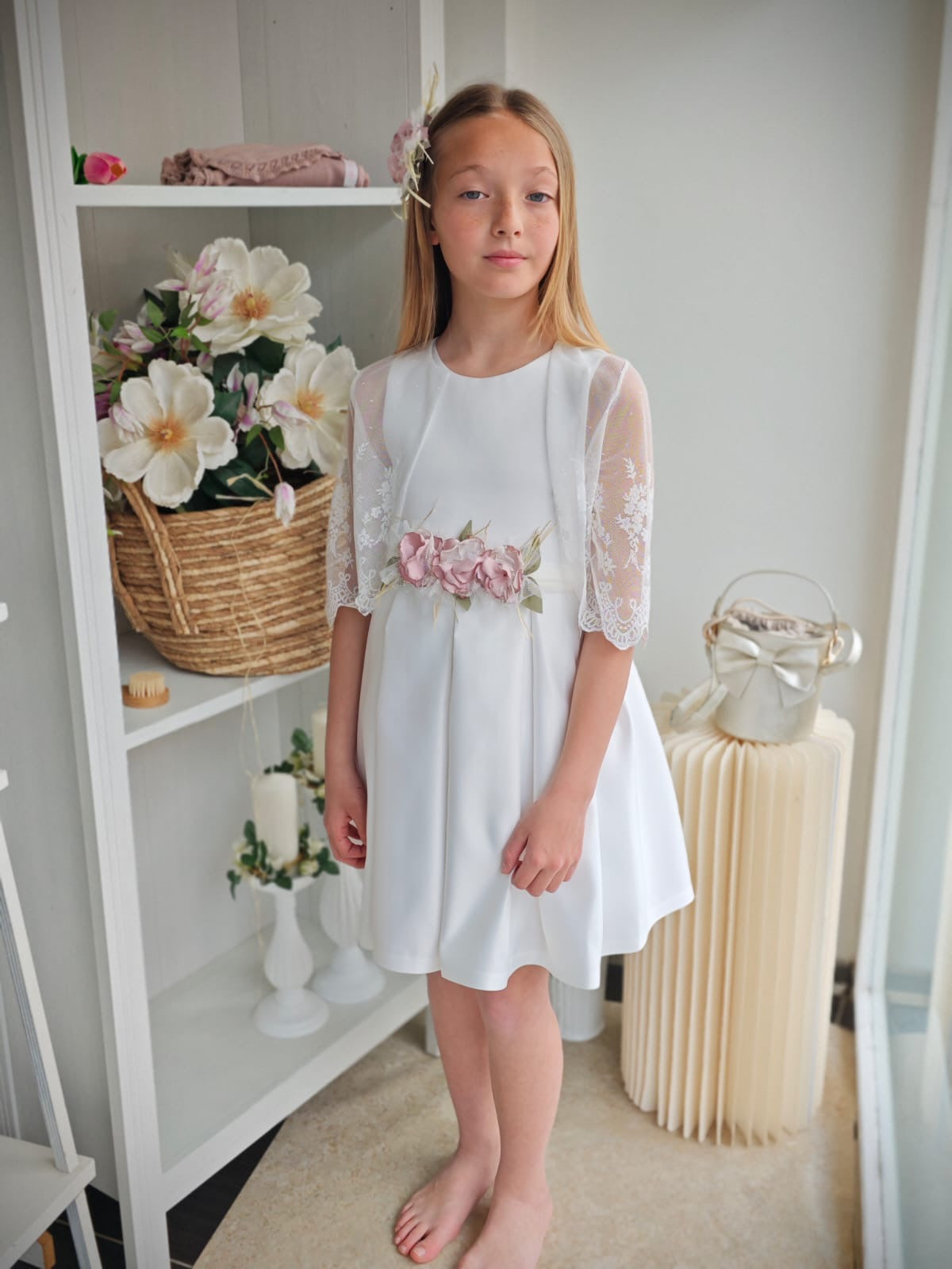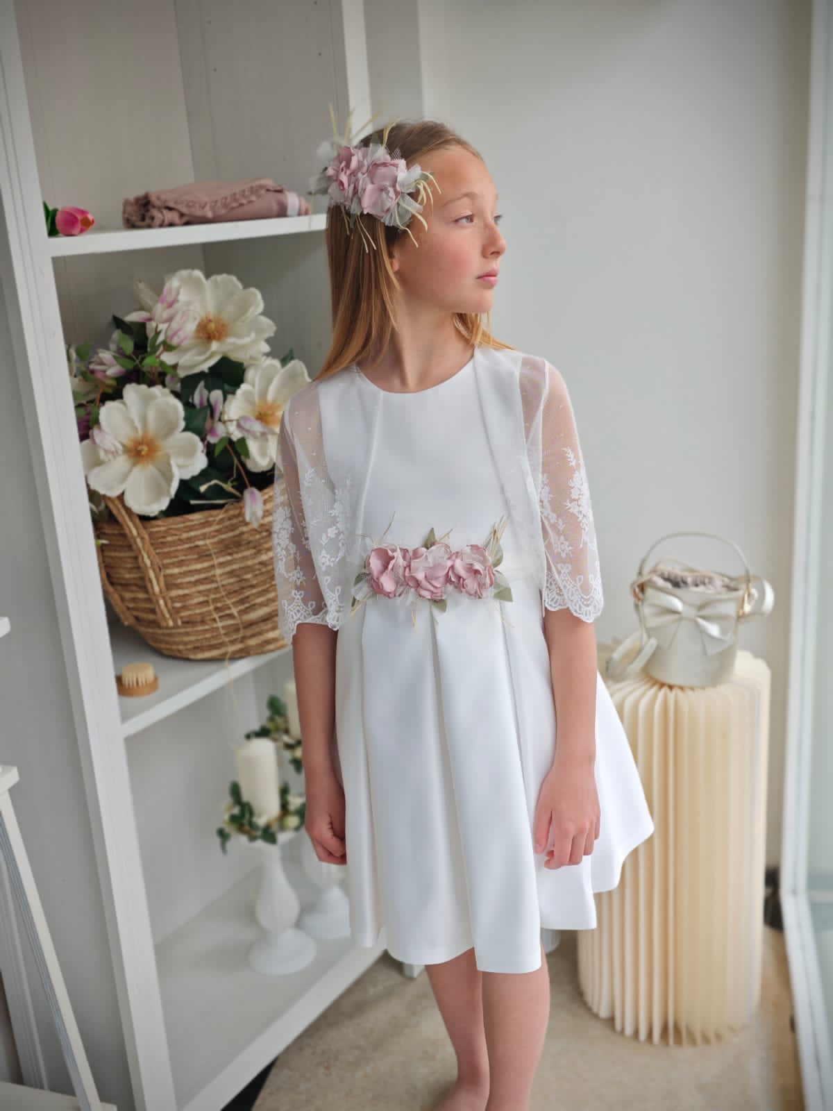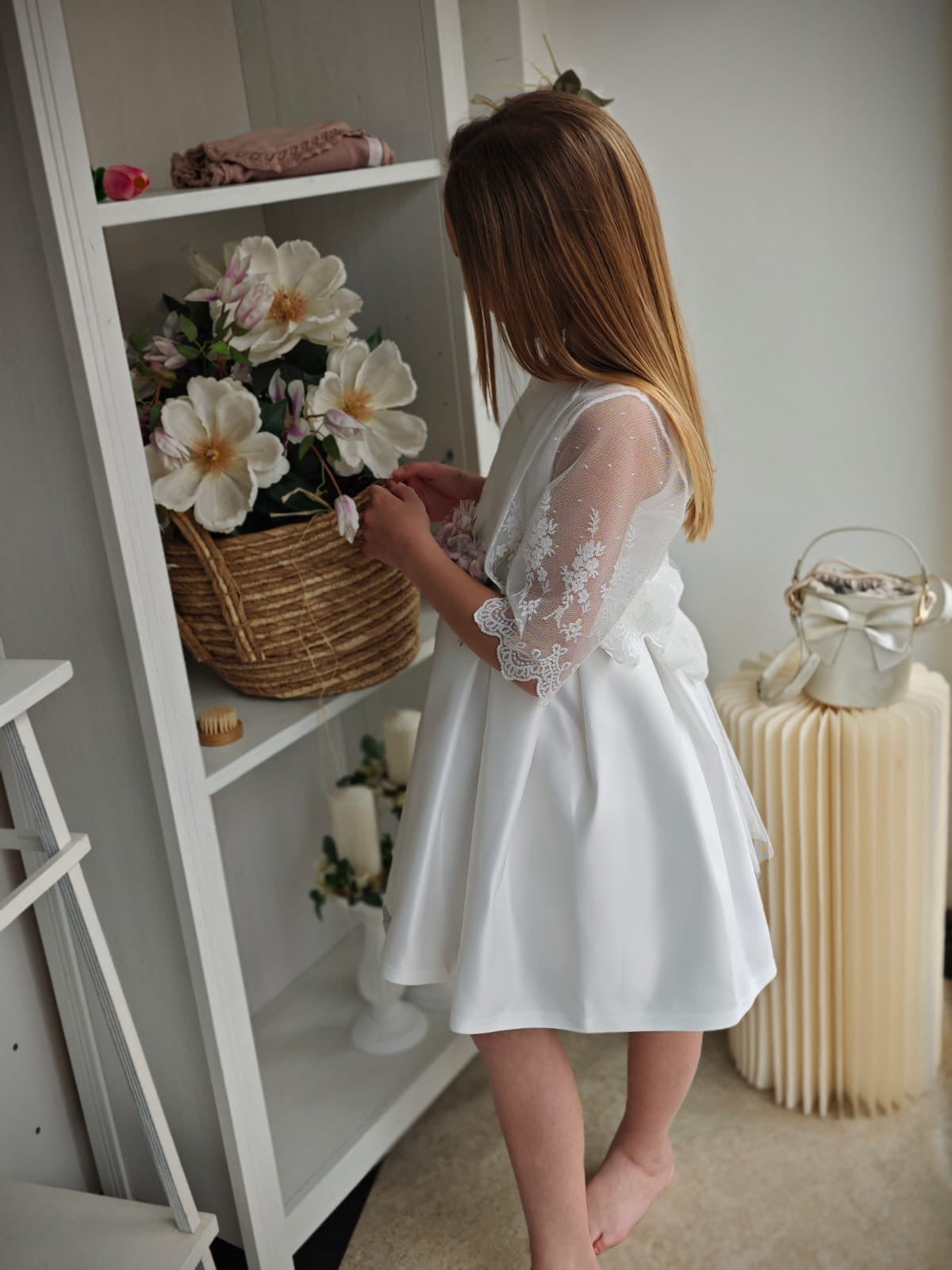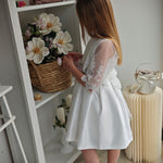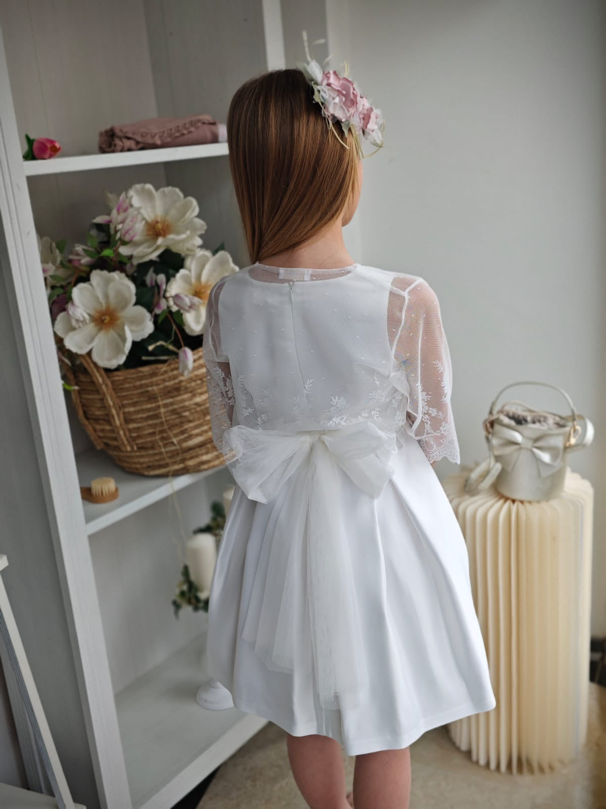 Cintura in vita in tulle con fiocco sul retro e spilla di fiori removibile sul davanti.