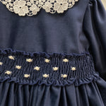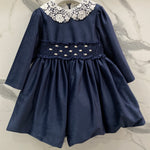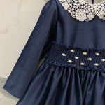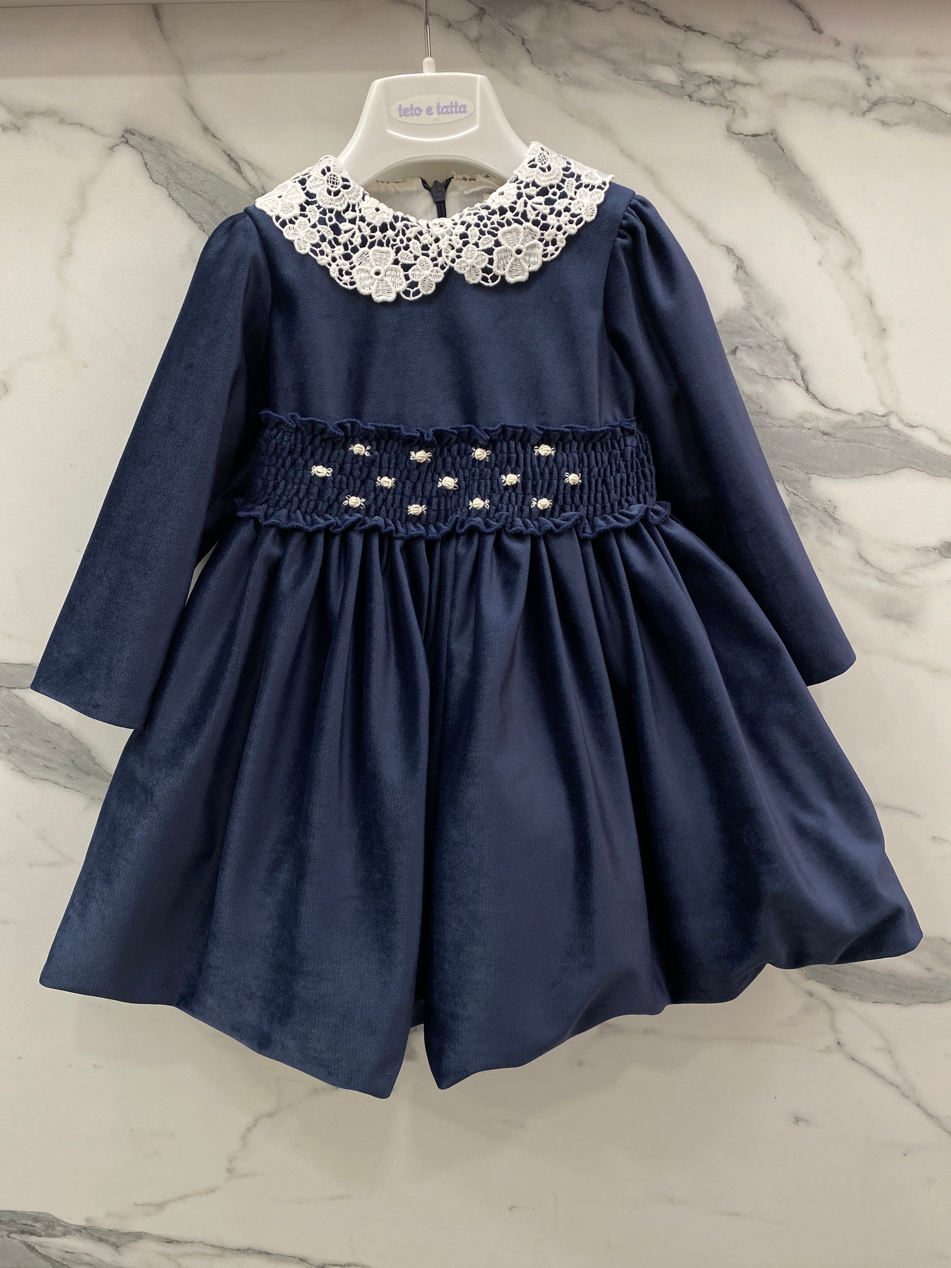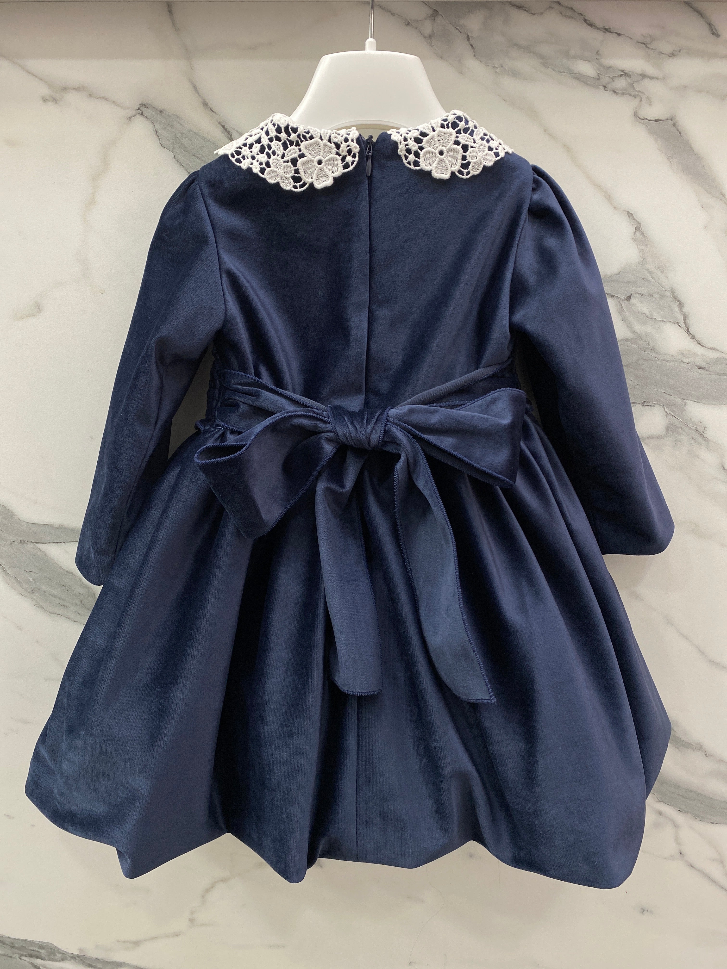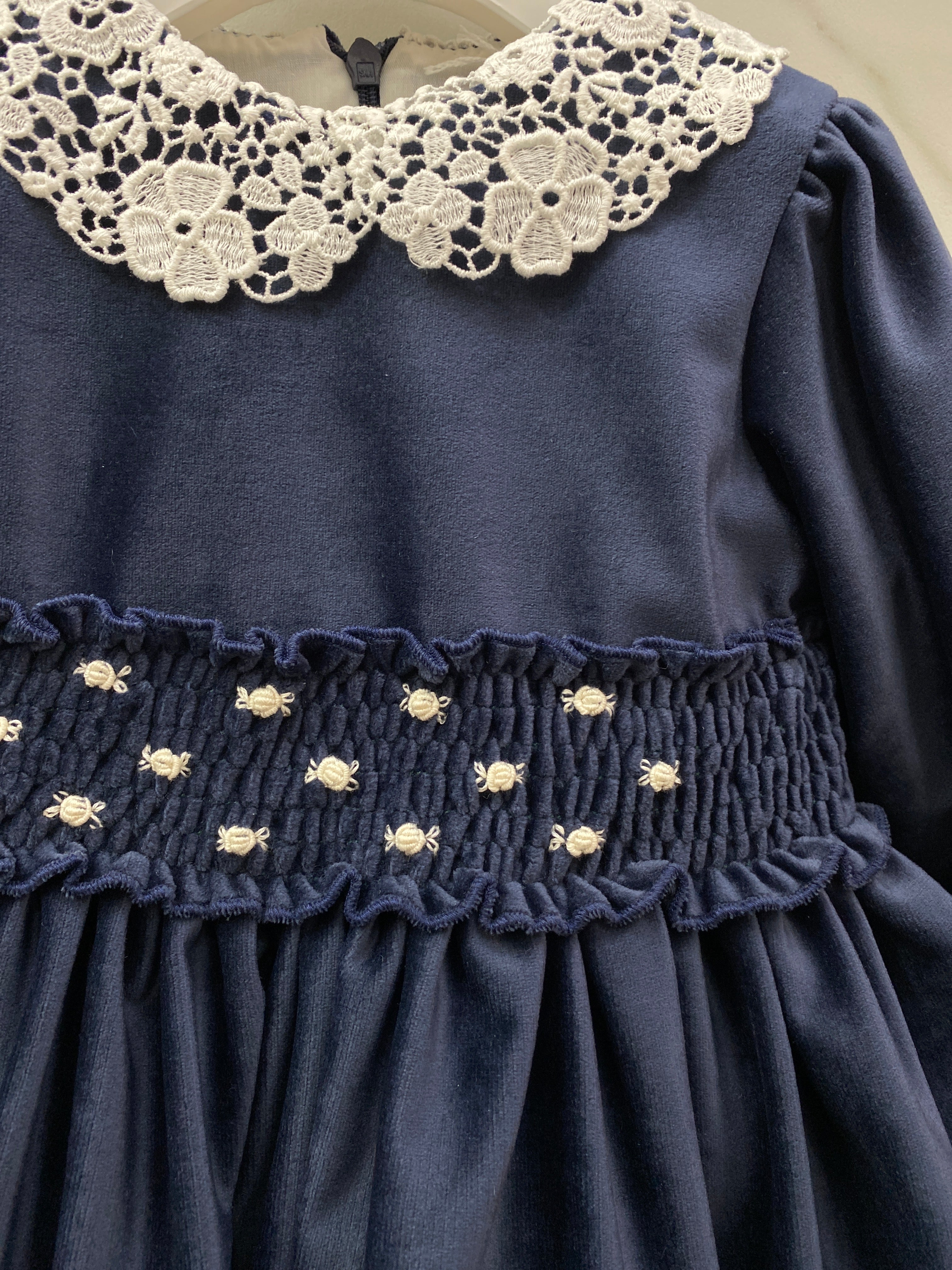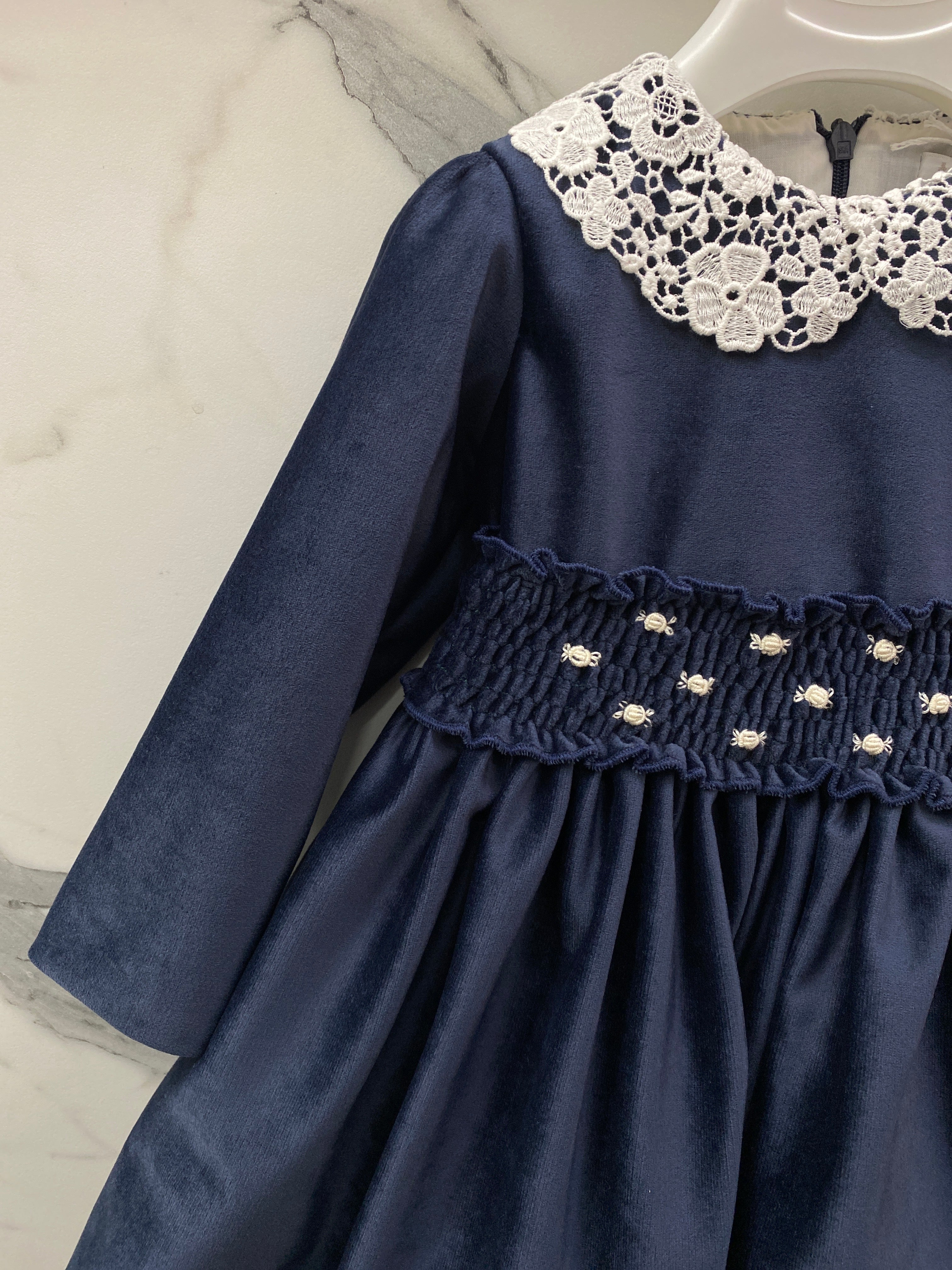 Questo abito elegante è perfetto per le occasioni speciali della tua neonata. Realizzato in morbido velluto, vanta una manica lunga e un grazioso colletto in pizzo. La fascia in vita con ricami a mano aggiunge un tocco di eleganza, rendendo questo abito un must-have per il guardaroba della tua bimba.