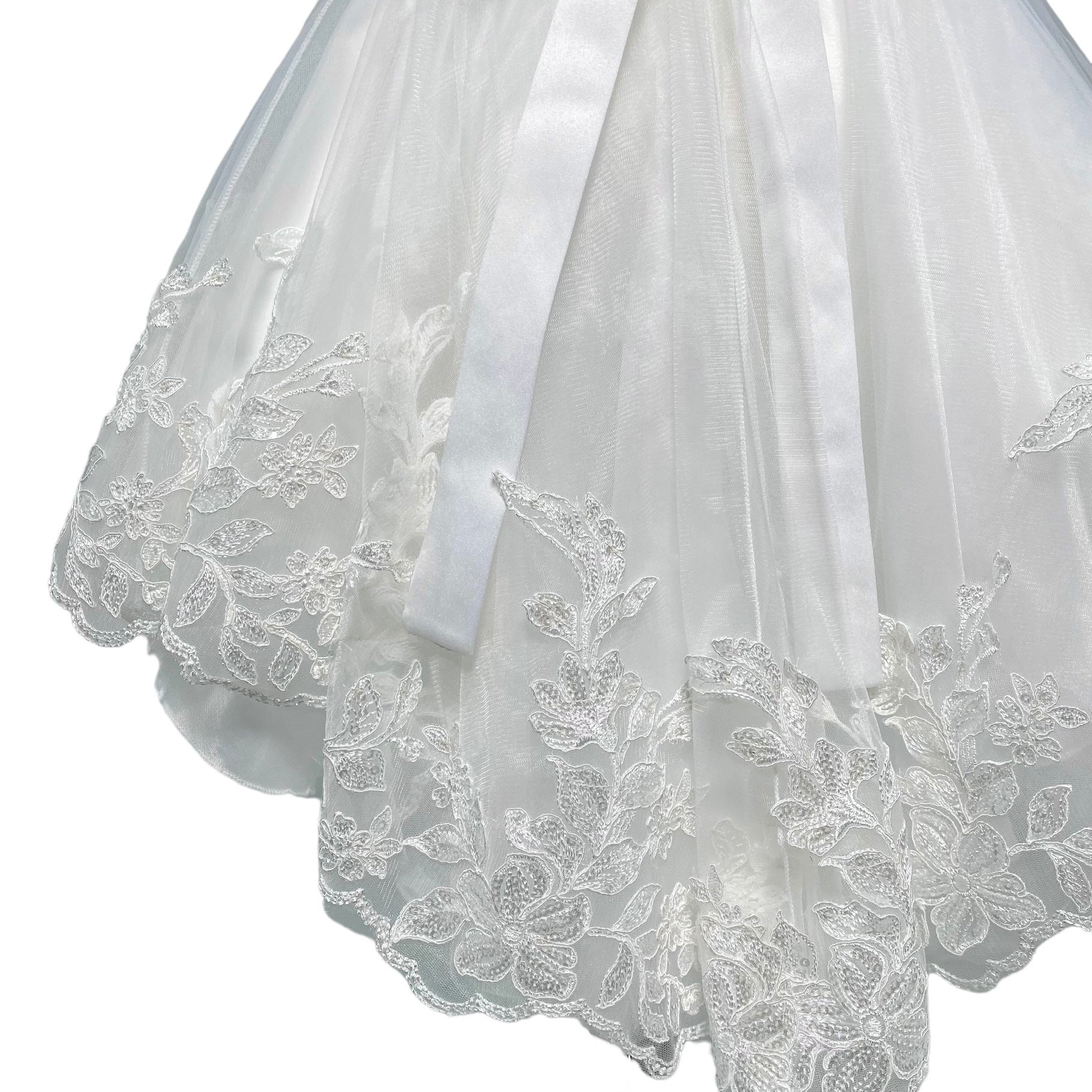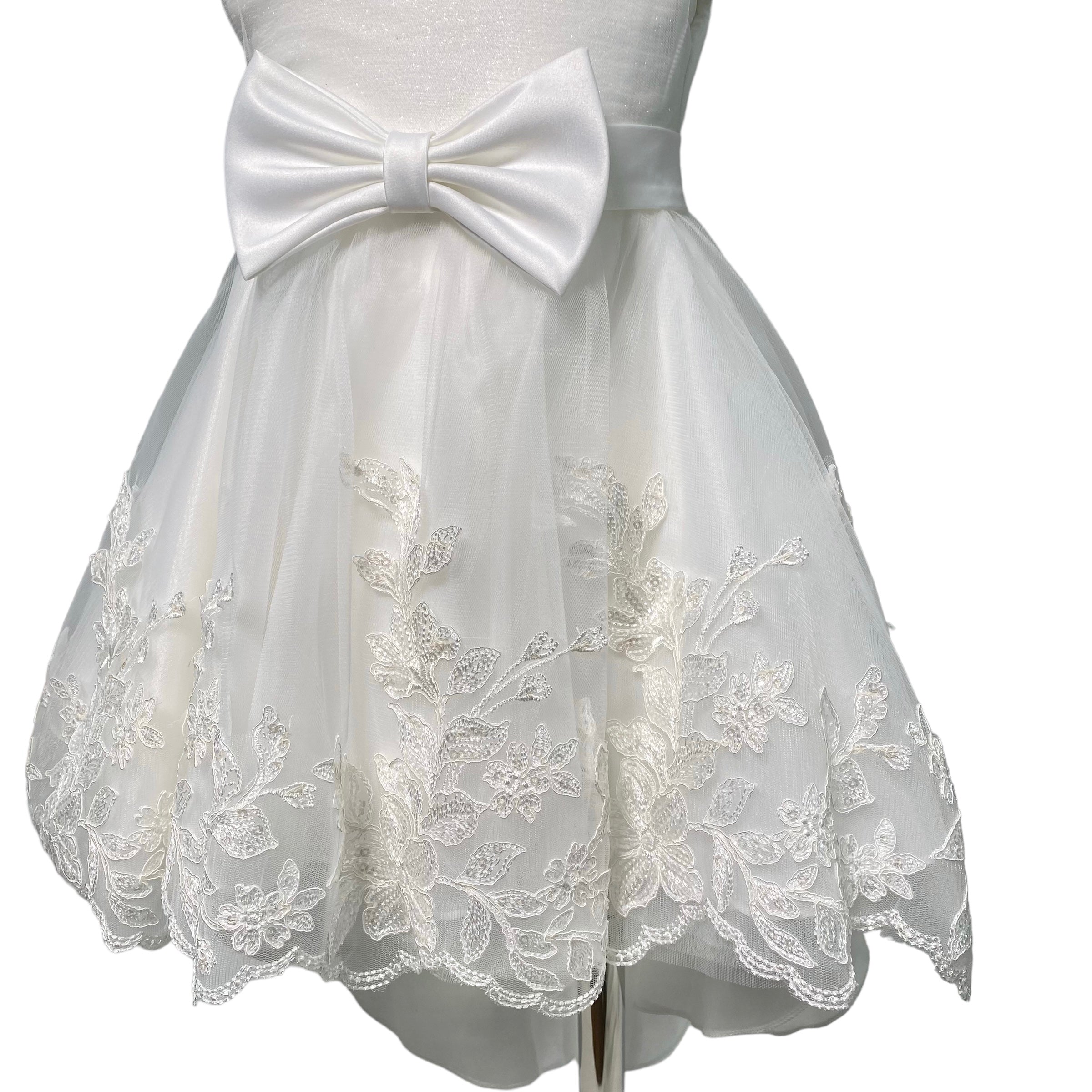 Abito Smanicato Elegante Battesimale In Pizzo Neonata ISABEL B12