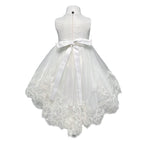 Fascia in raso in vita, con spilla di fiori ( removibile) sul davanti e fiocco sul retro.