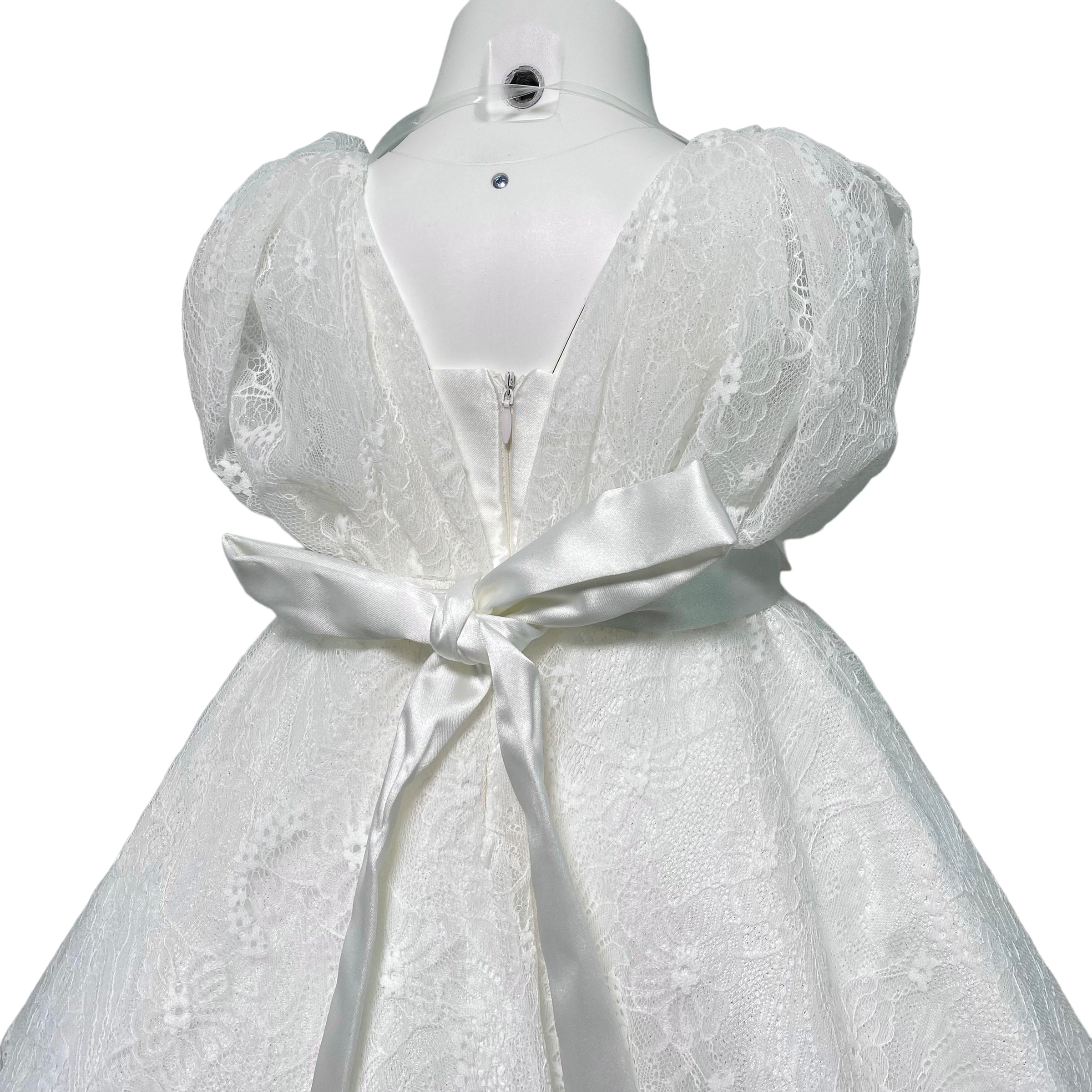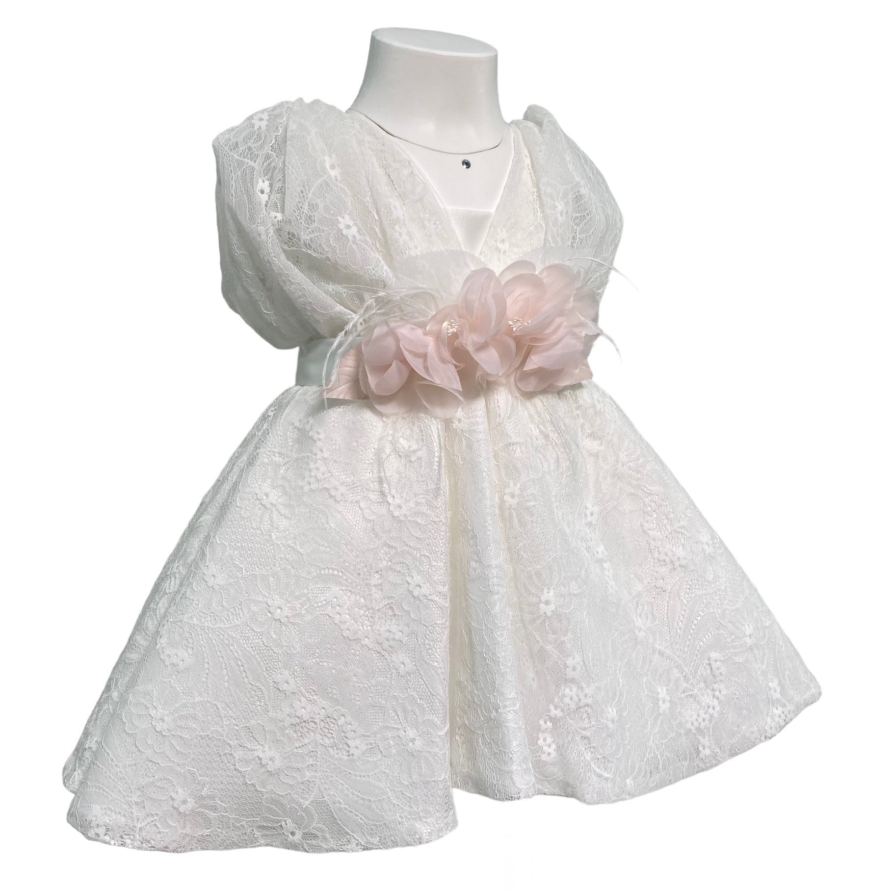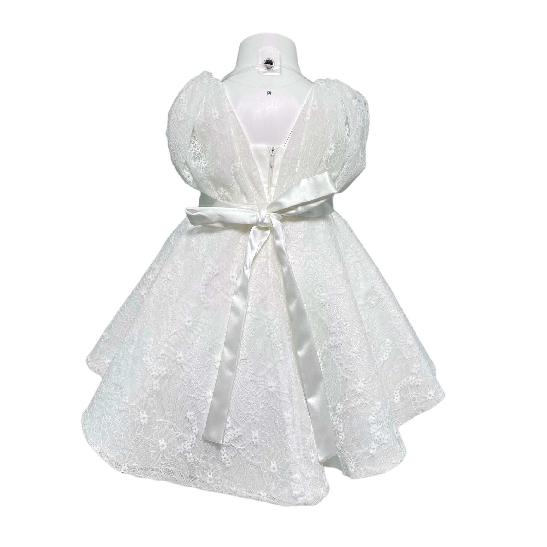 Abito Smanicato Elegante Battesimale In Pizzo Neonata ISABEL B16