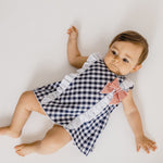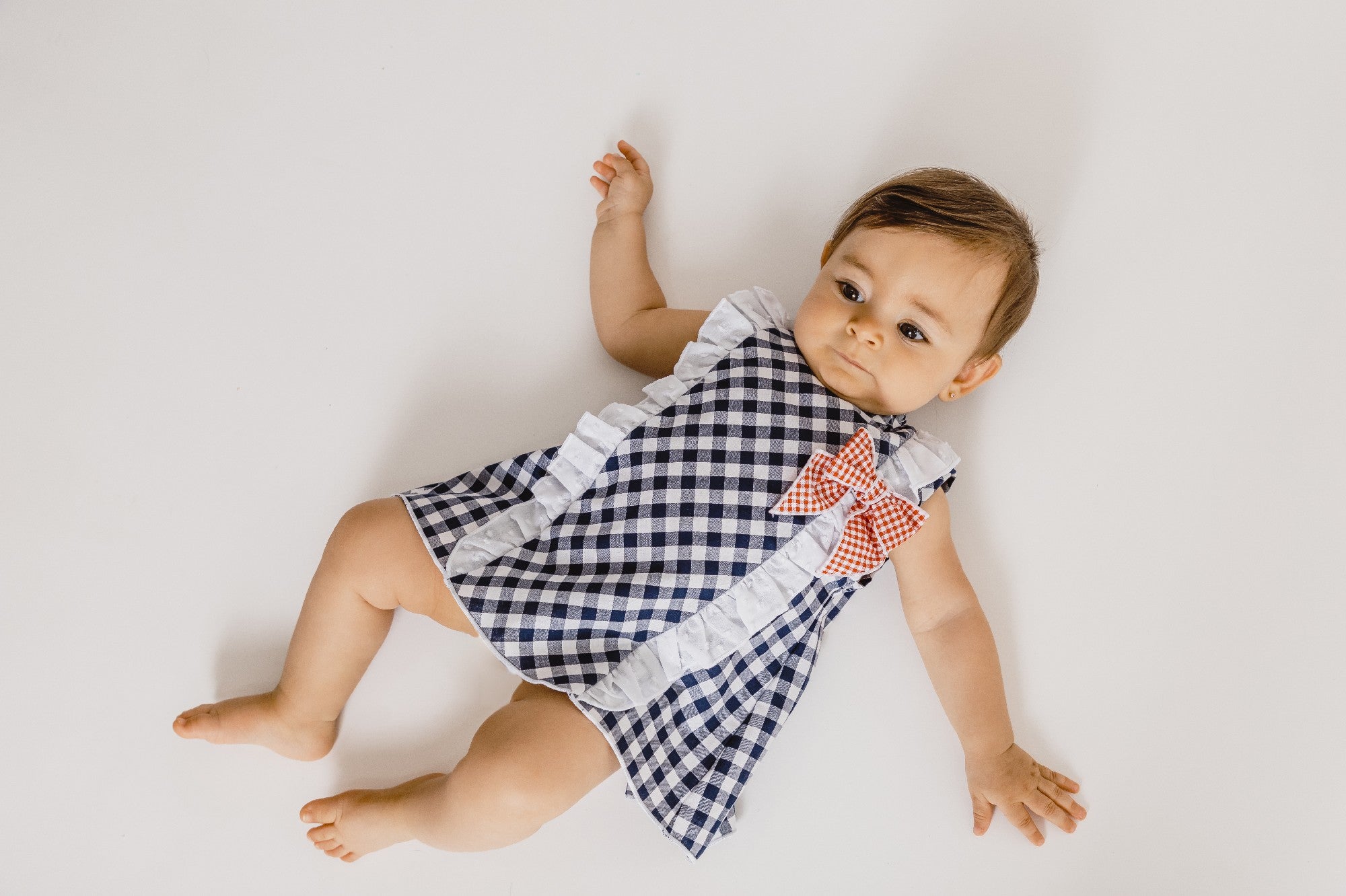 -arricchito da fasce sul davanti in plumetis bianco,fiocco laterale in vichy rosso