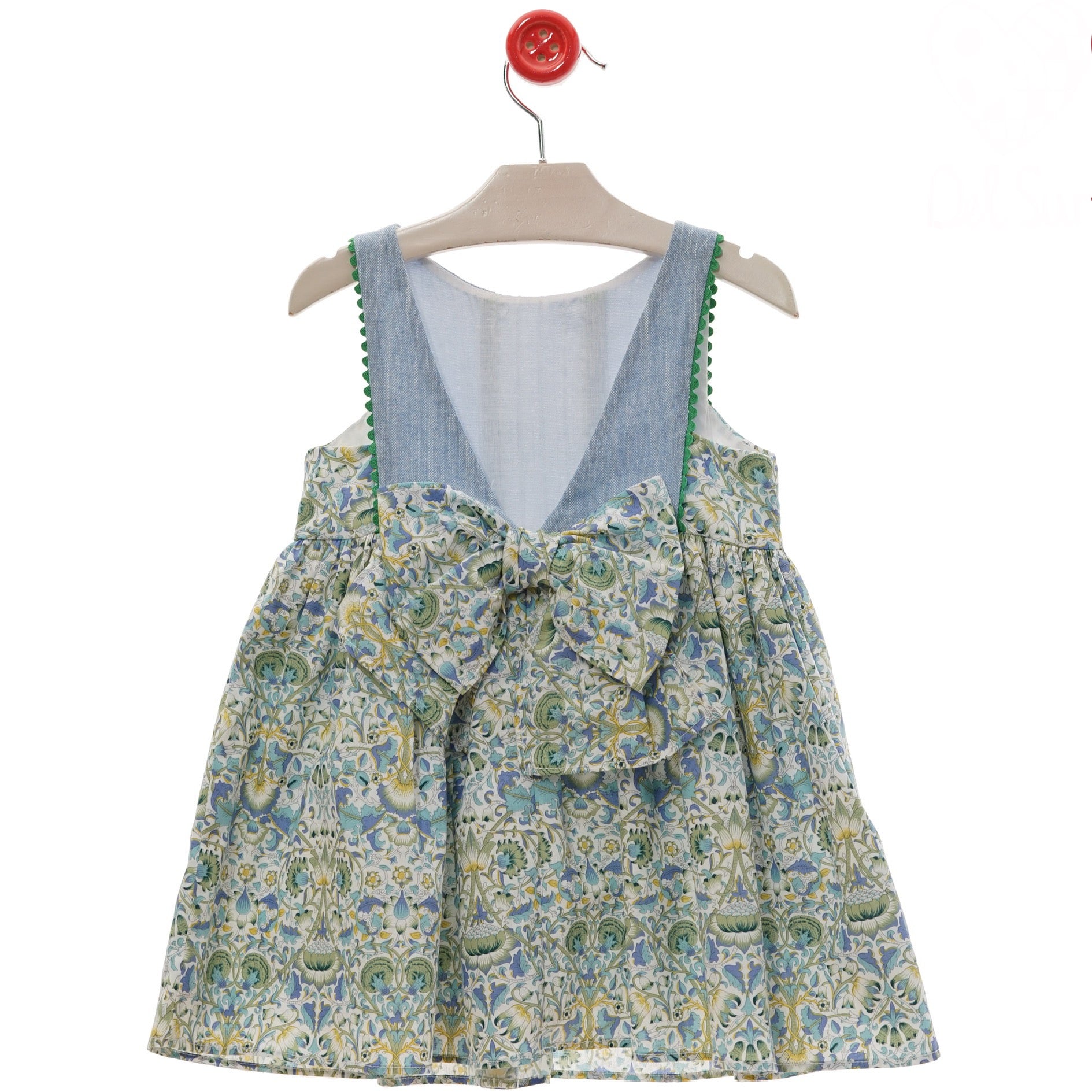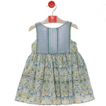Questo bellissimo abito smanicato bambina è composto da un corpetto in denim e da una gonna con fantasie floreali. Lo scollo schiena e il fiocco retro ne donano un tocco elegante e casual chic. Perfetto per un look raffinato e alla moda.