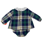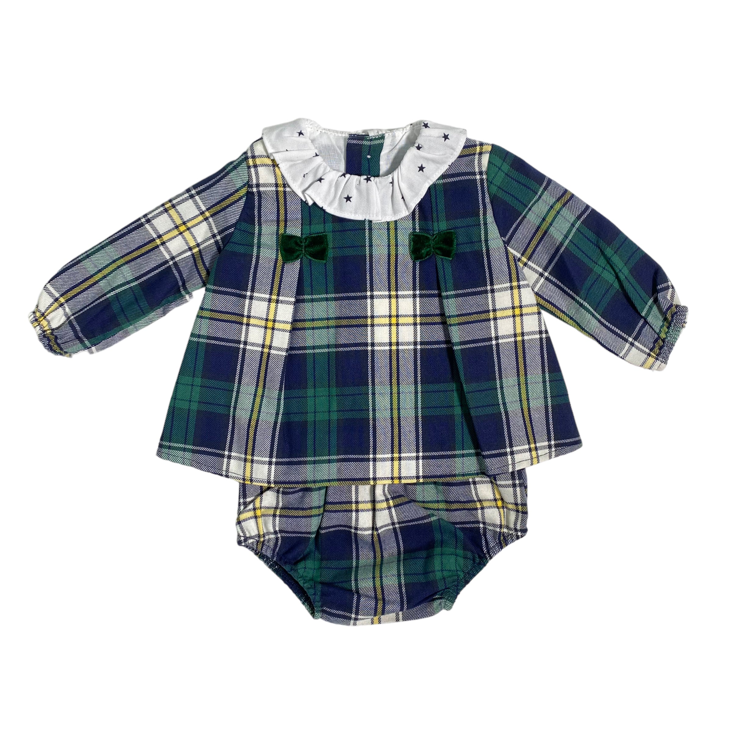 Abito svasato manica lunga in caldo cotone, con colletto rouches con stelle.