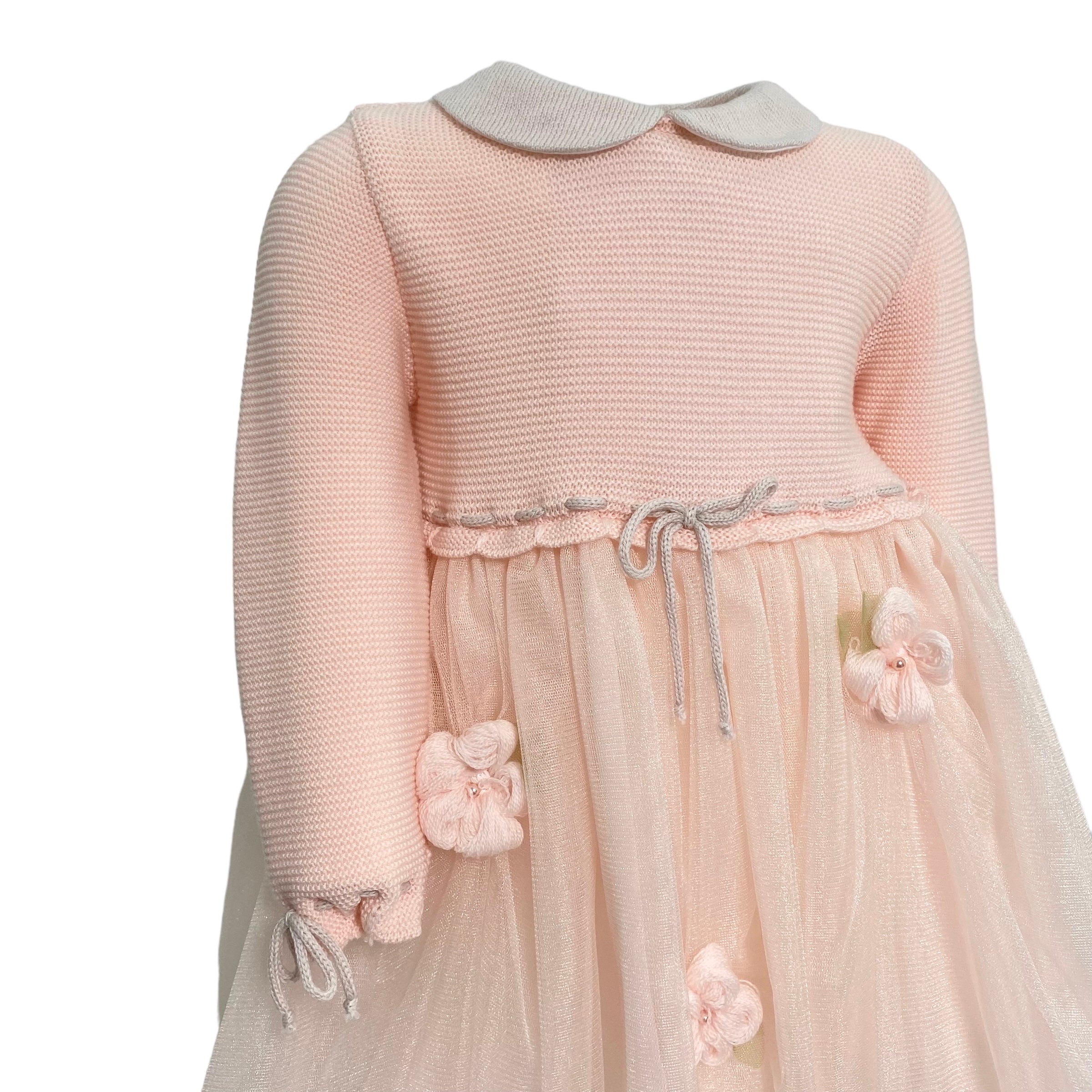 Abito Svasato Manica Lunga Elegante In Lana E Tulle Neonata BIMBALO' 6734