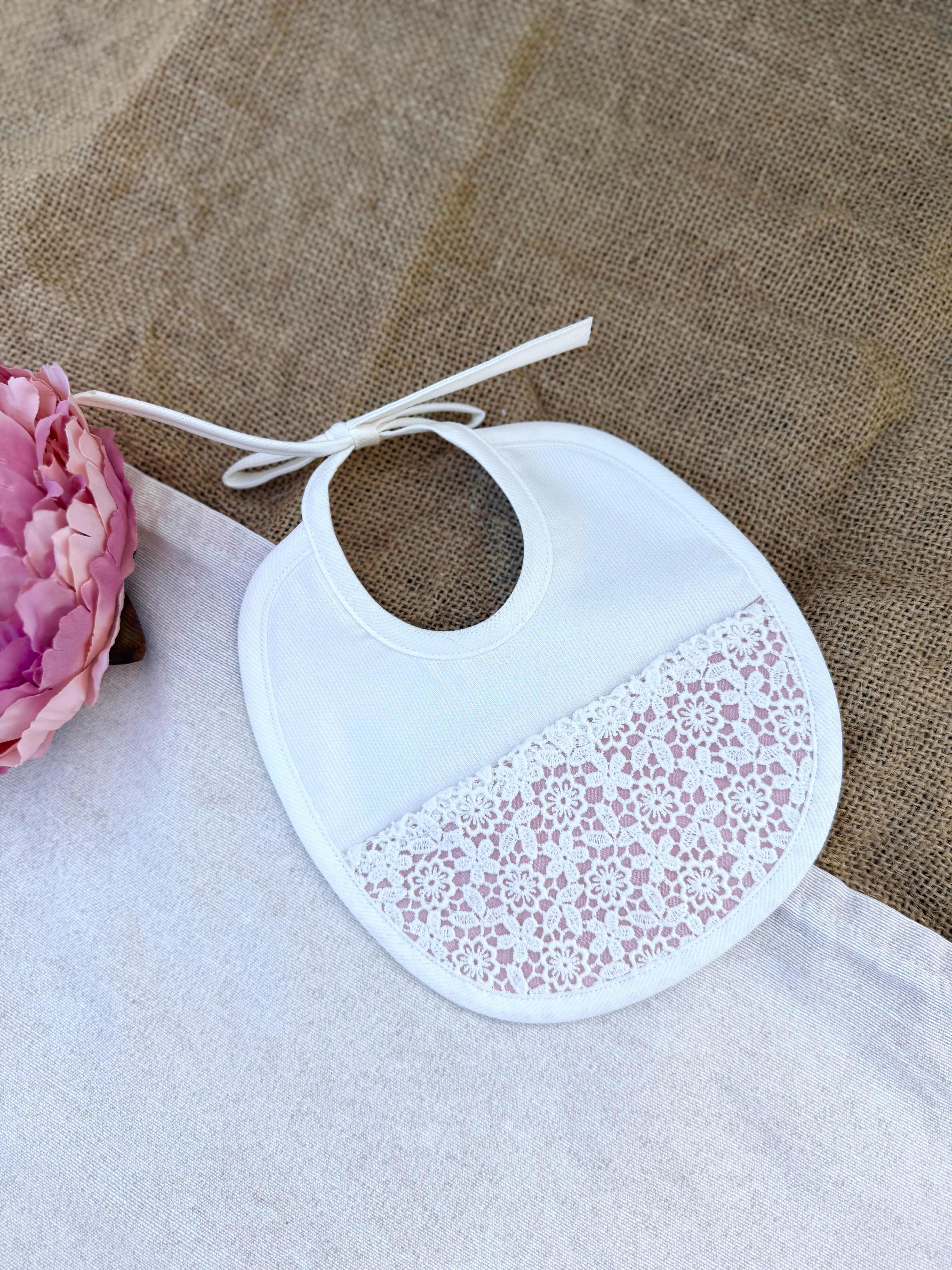 Questa Bavetta Corredino TETO E TATTA BA7350 è perfetta per la tua neonata! Realizzata con un delicato dettaglio di pizzo su un morbido tessuto color panna e rifinita con un elegante fondo rosa antico, questa bavetta è l'ideale per mantenere pulita la tua piccola durante i pasti. Dotata di chiusura con lacci per una vestibilità comoda e sicura.