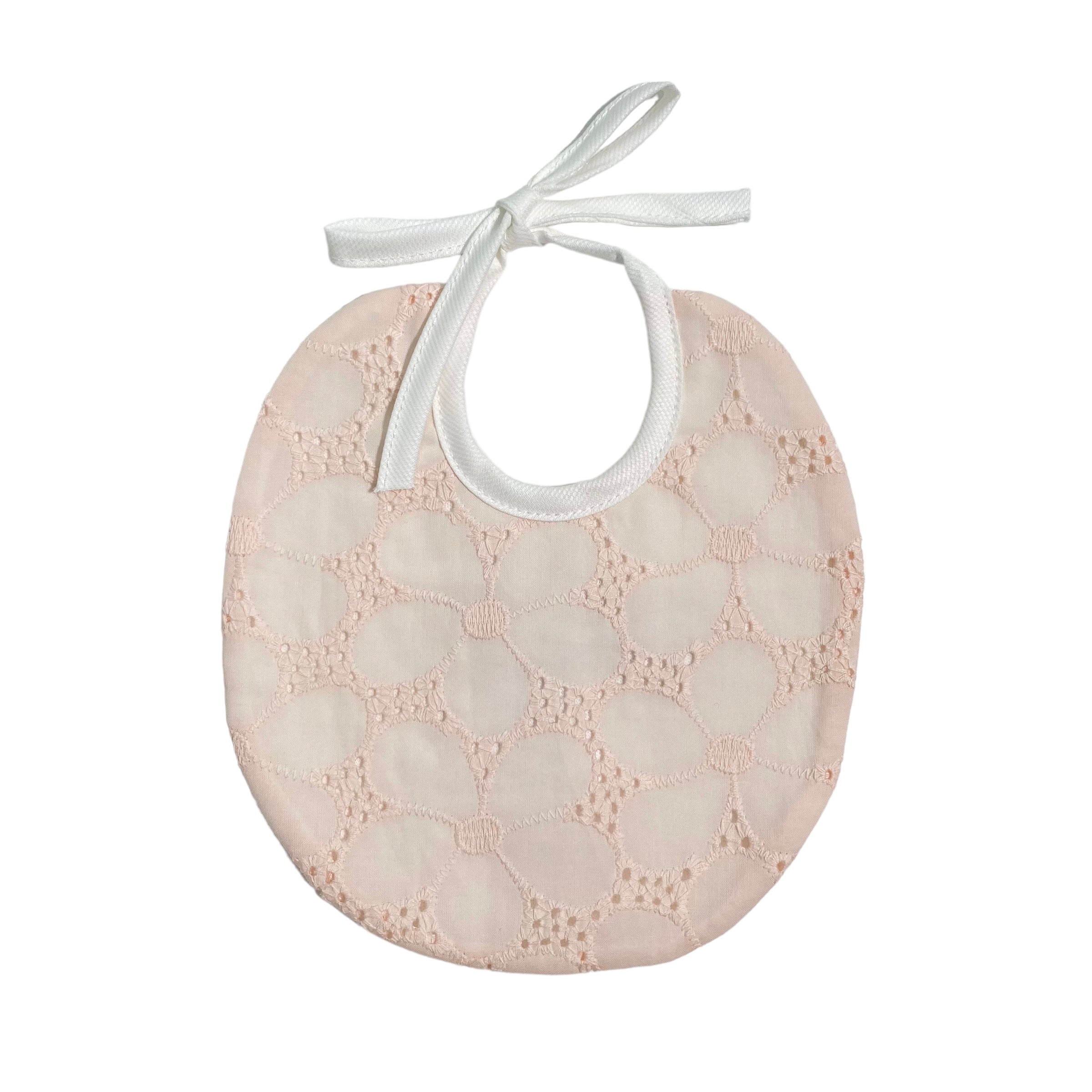 Bavetta in pizzo san gallo rosa, foderata in cotone panna.