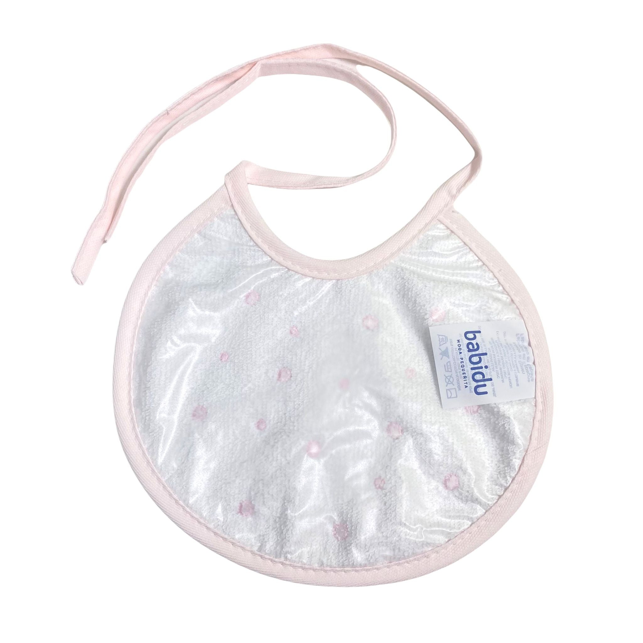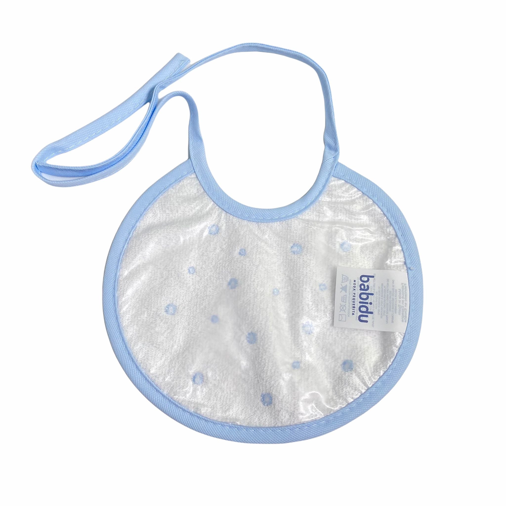 Bavetta singola per lui e lei in spugna con retro plastificato e fantasia a pois.