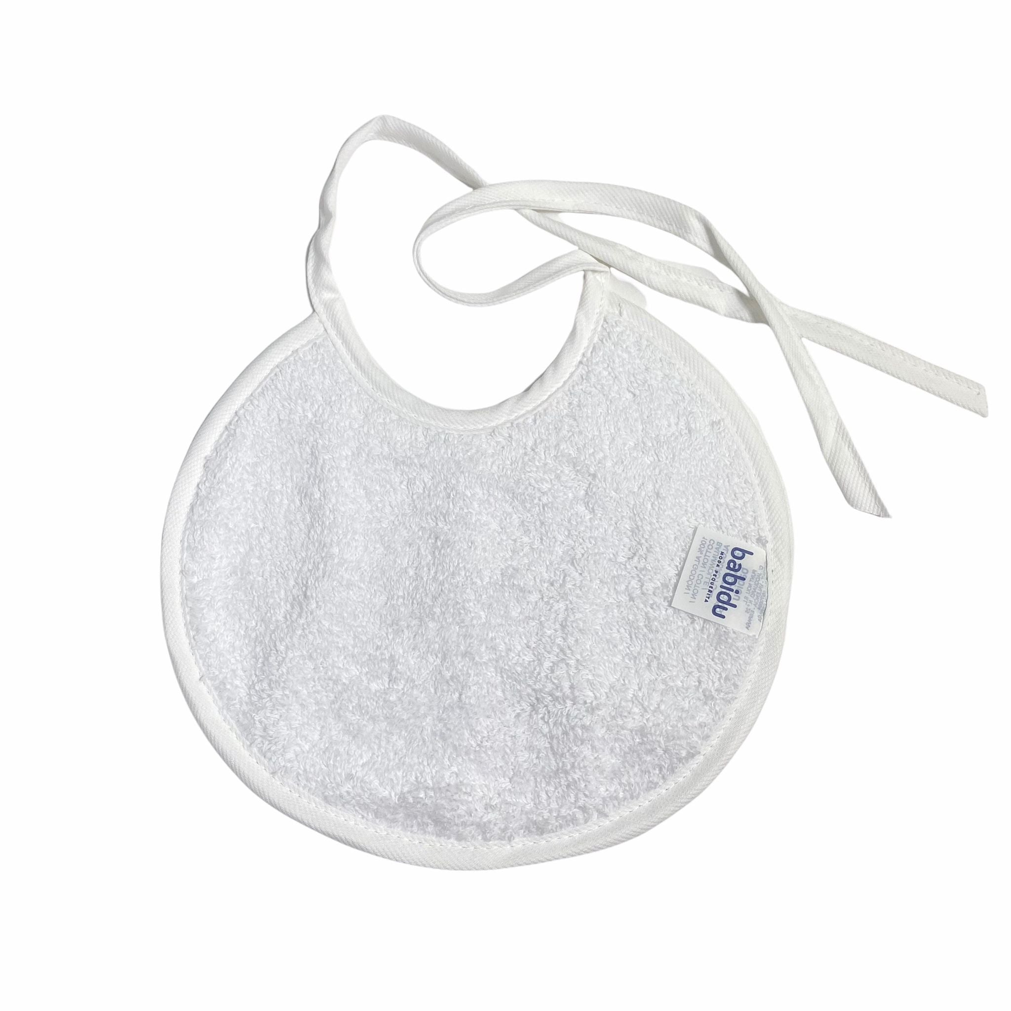 Questa bavetta singola in spugna tinta unita della marca BABIDU è perfetta per il neonato o la neonata. Con un merletto orizzontale centrale, aggiunge un tocco di eleganza e praticità alla quotidiana pulizia. Assicura comfort e morbidezza mentre mantiene il bambino/a pulito/a.