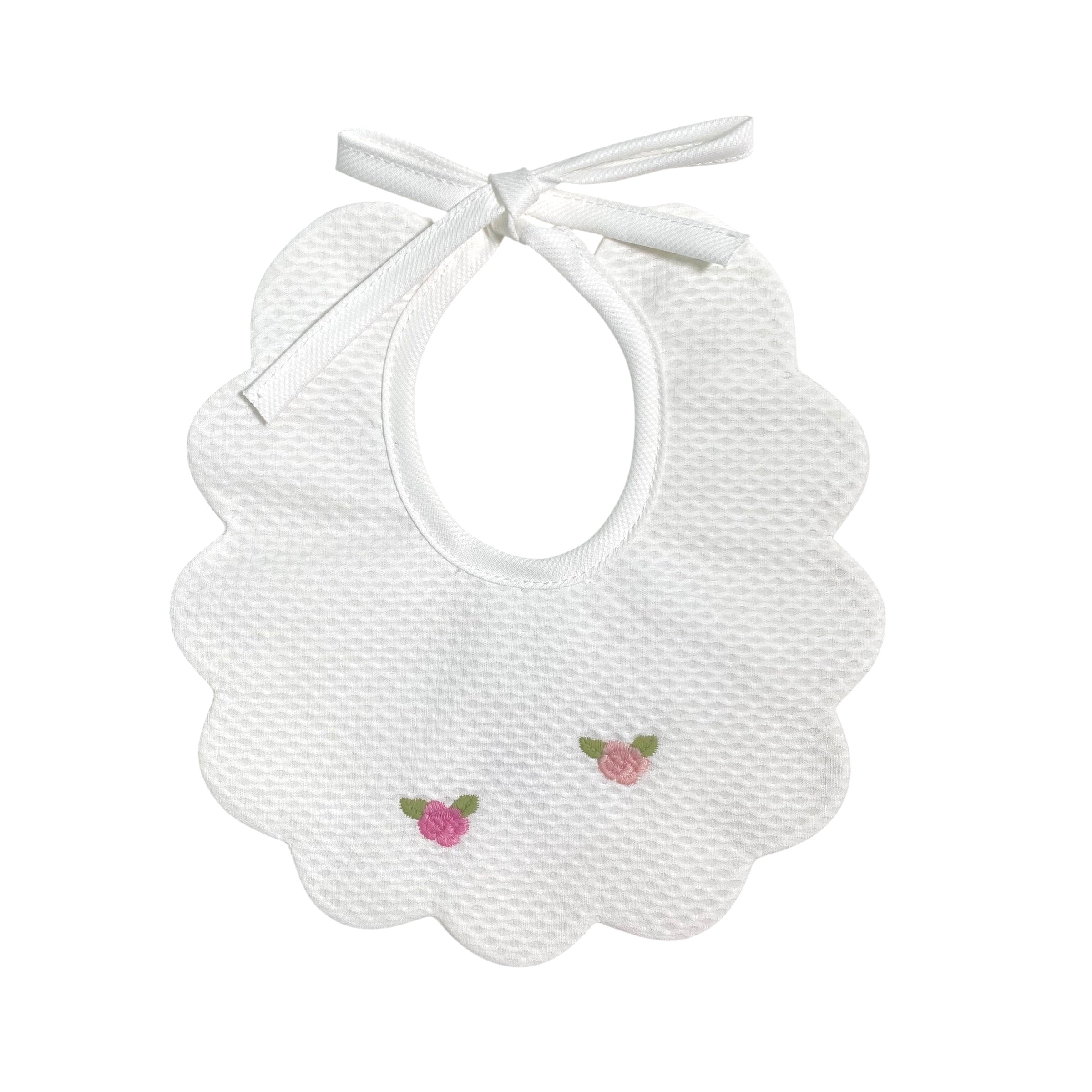 Questa bavetta smerlata in piquet, ricamata con cura, è ideale per il corredino del neonato. La chiusura con laccetti assicura una vestibilità comoda e regolabile, mentre il tessuto traspirante garantisce comfort durante l'uso. Un accessorio elegante e pratico per accompagnare i primi momenti del tuo bambino con stile e delicatezza.