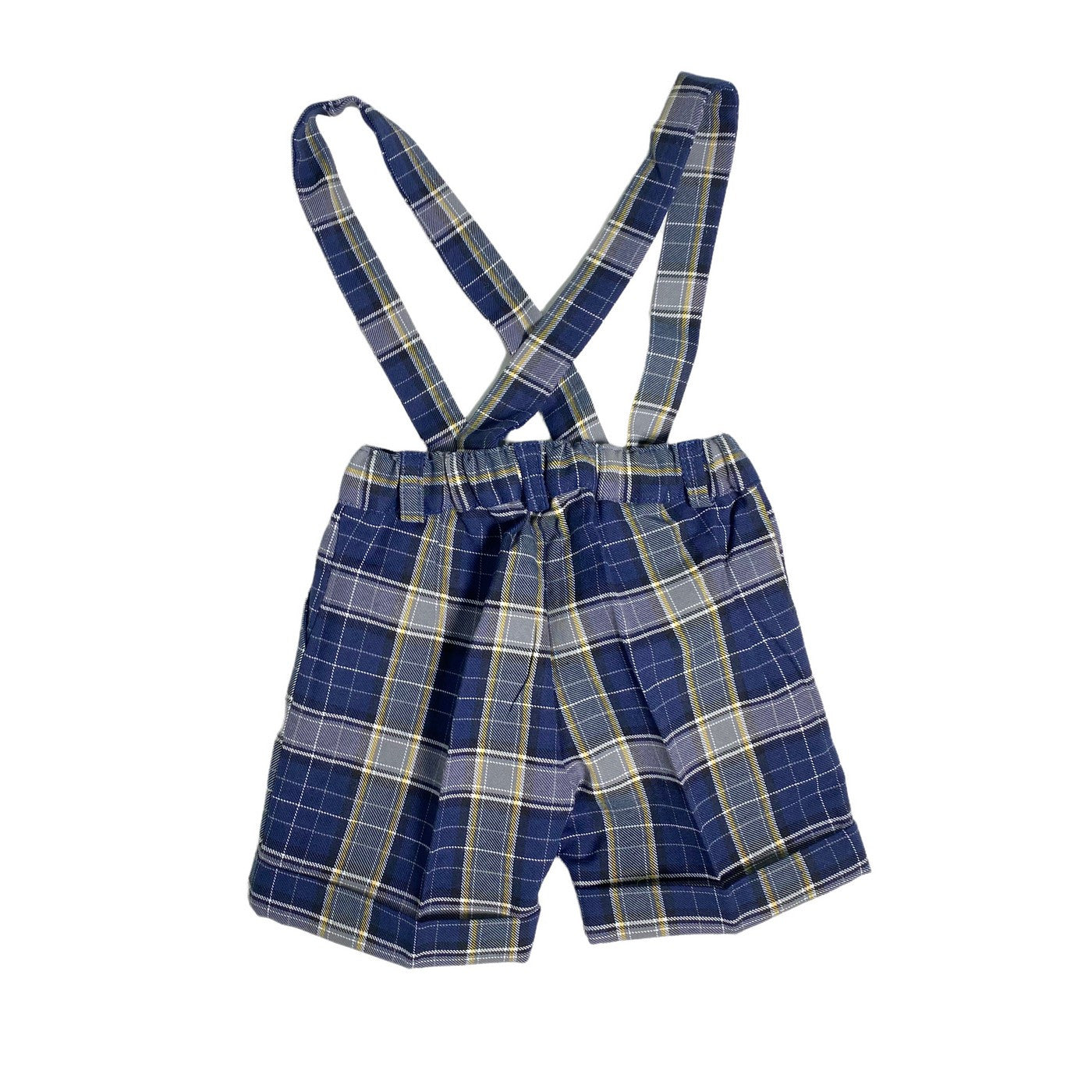 Bermuda con bretelle in caldo cotone, fantasia scozzese.