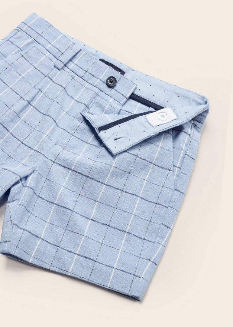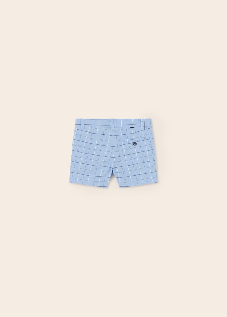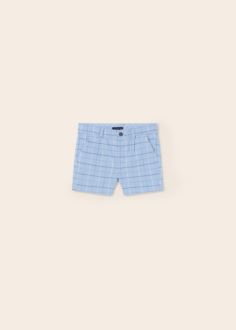 Pantalone corto modello bermuda per bebé. Chiusura con un unico bottone. Tessuto dall'aspetto fresco e moderno di lino. Tasche funzionali nella parte anteriore e posteriore del capo.