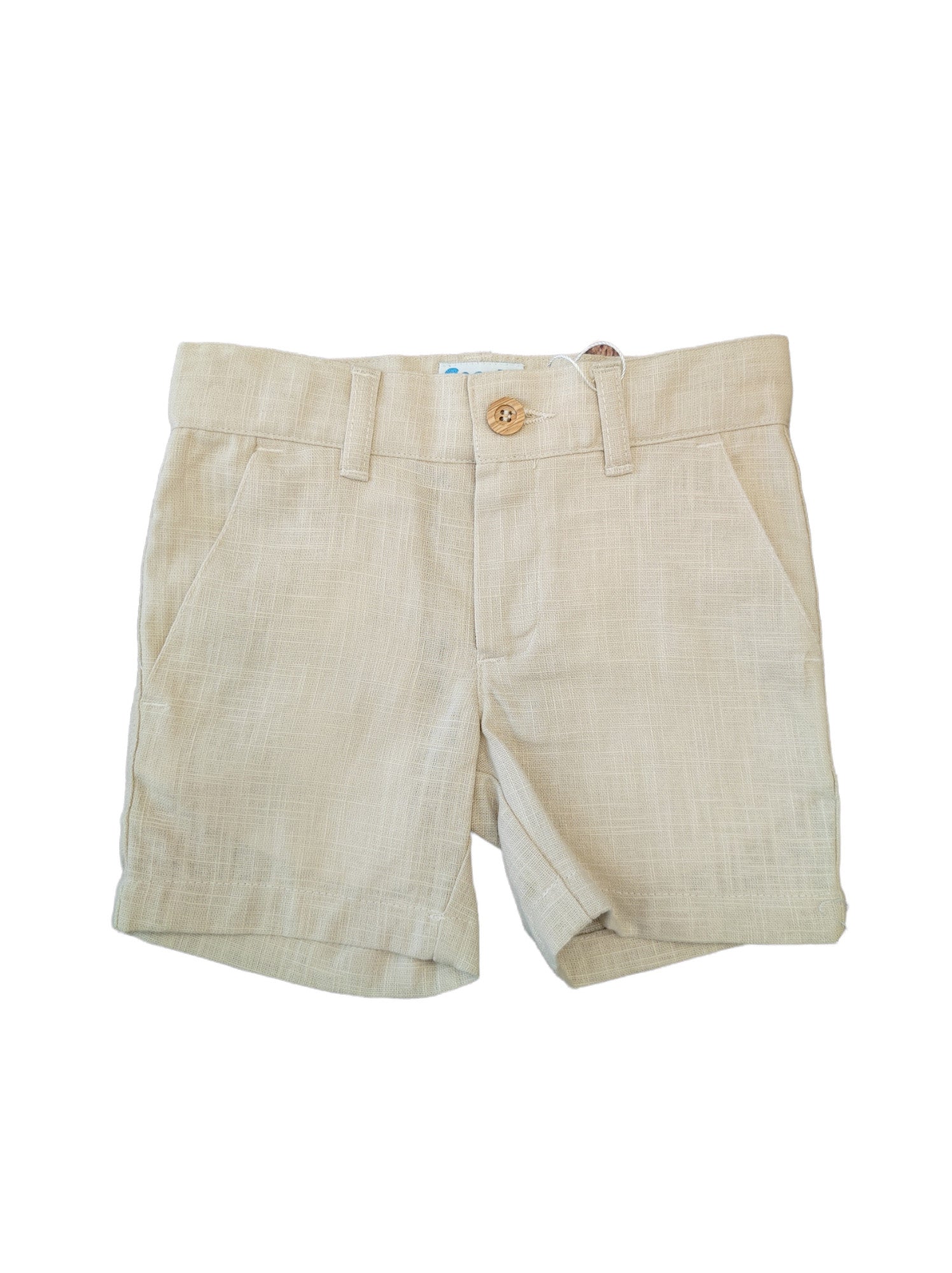 Bermuda per lui in tessuto naturale organico (ramio) color bluette, beige e bianco.