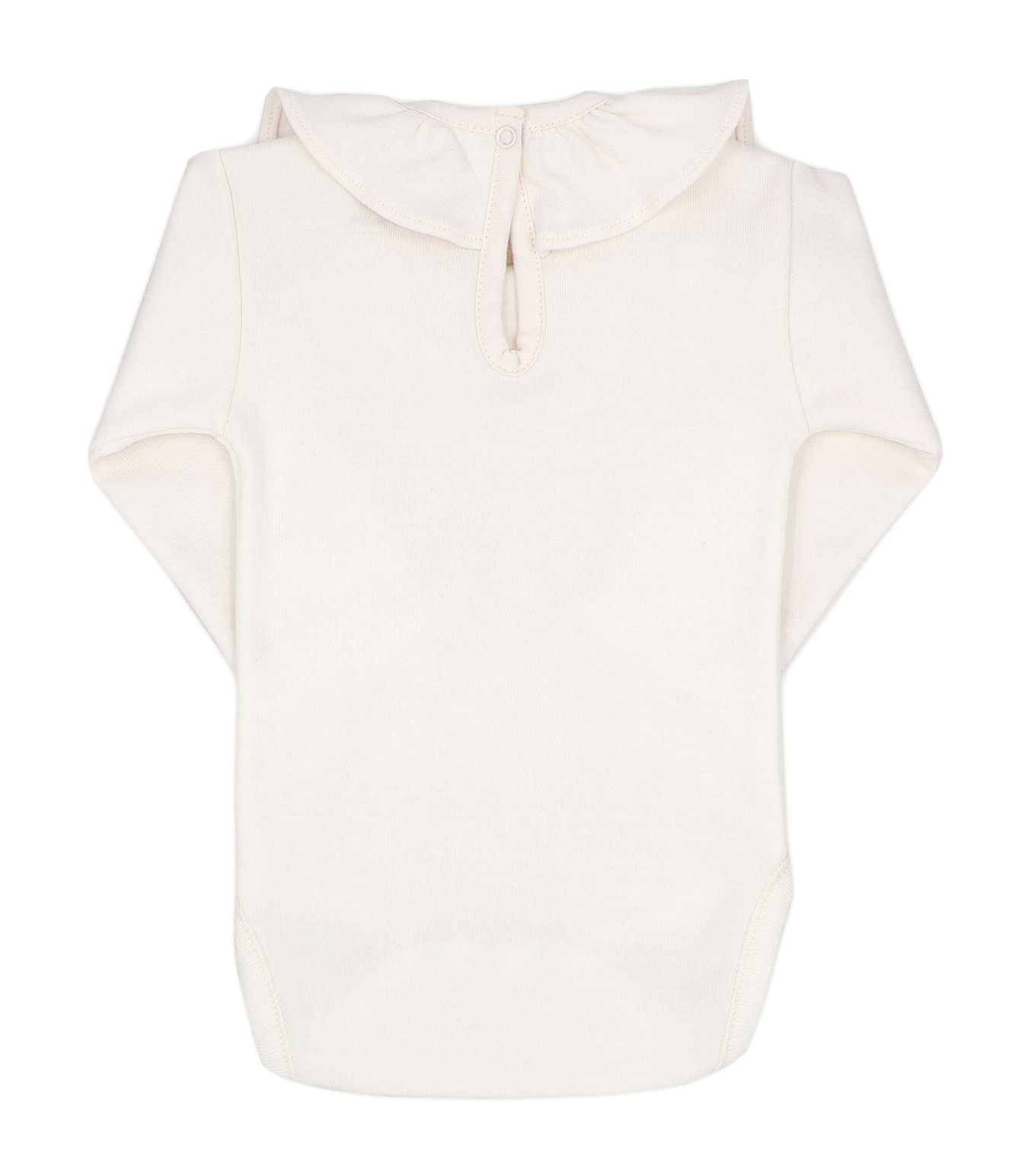 Body manica lunga in caldo cotone con rouche sul girocollo .