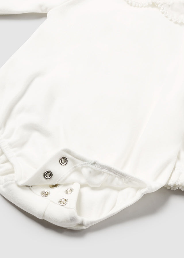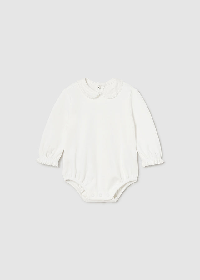 Questo body in caldo cotone con colletto per neonata di MAYORAL è ideale per i primi giorni di vita della tua piccola. Realizzato con materiali di alta qualità, garantisce un comfort irresistibile per il tuo bambino. Perfetto come sotto abiti o per un look elegante e raffinato. Indossalo per l'arrivo in clinica della tua neonata e lasciati conquistare dalla sua morbidezza.