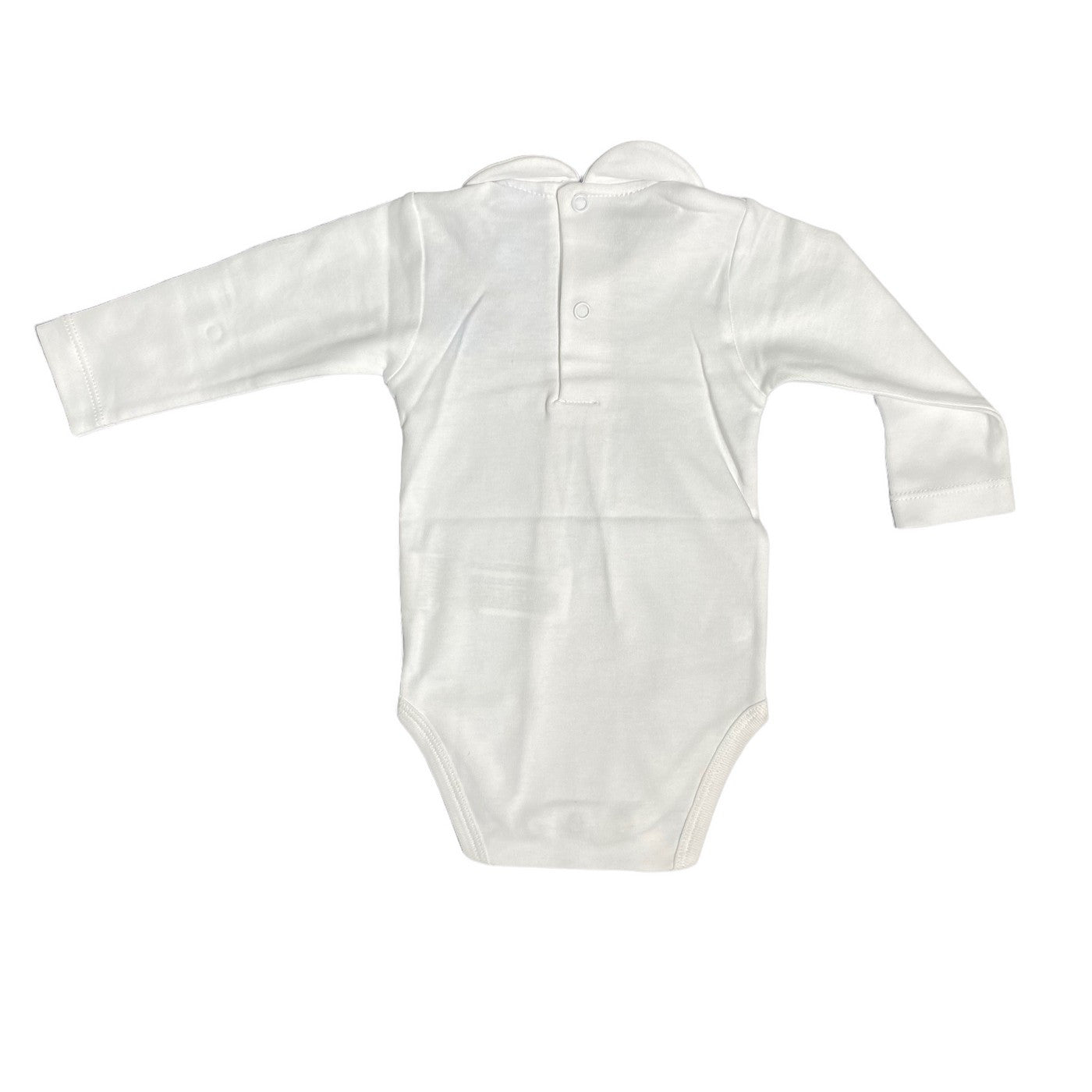 Body in caldo cotone bianco, con colletto ricamato blu.