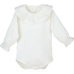 Body Manica Lunga In Caldo Cotone Con Collo Rouches Plumetis Neonata CALAMARO 19075