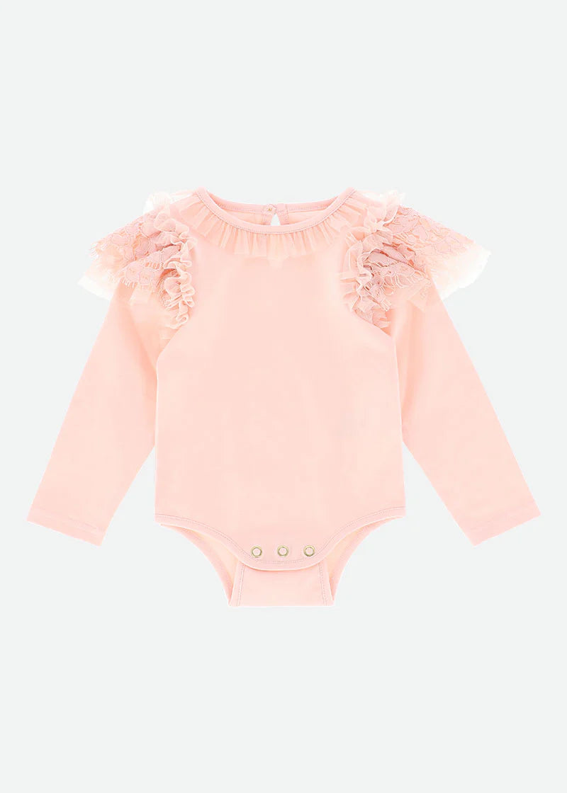 Il body In Caldo Cotone Con Pizzo Neonata ANGEL'S FACE PRIMROSE offre un comfort ineguagliabile grazie alla sua composizione in 95% cotone elasticizzato e 5% elastan.
